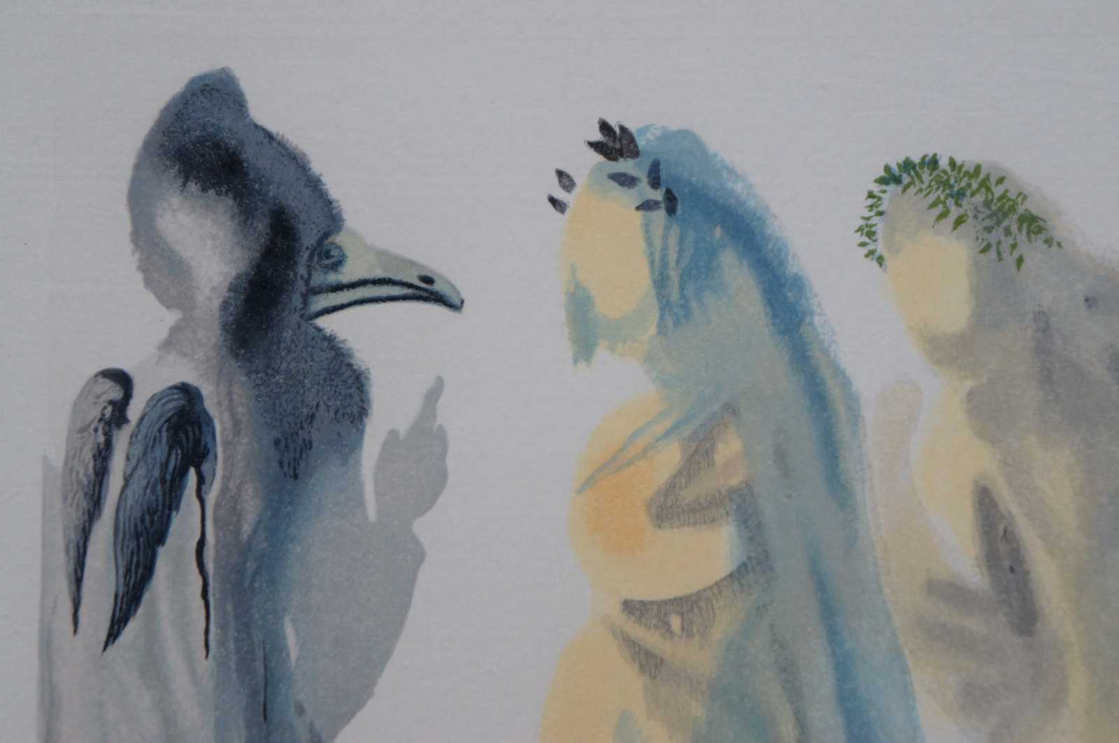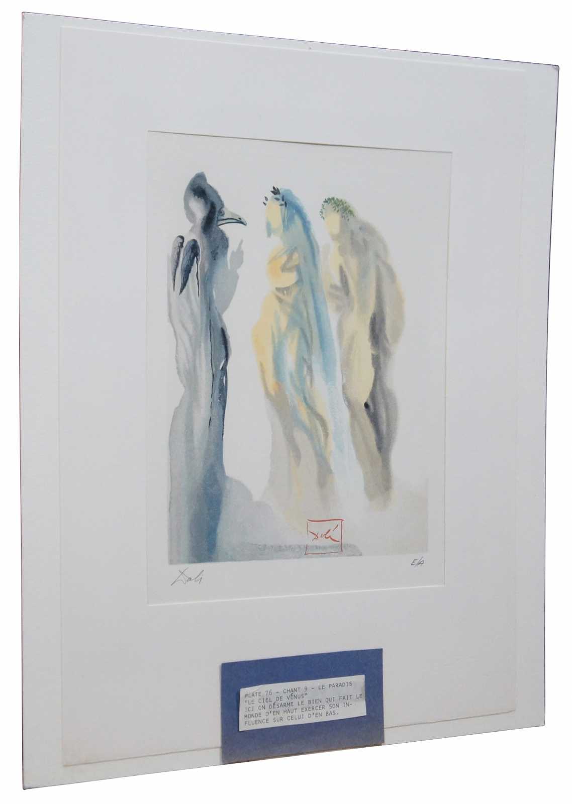 Original woodcut artist’s proof print, pencil signed by Salvador Dali – Plate 76 – Chant/Canto 9 – from Le Paradis (Paradise) – “Le Ciel de Venus” (The Sky of Venus) from the “Divine Comedie” series. Original certificate of authenticity covered 10 separate prints – photocopy included.