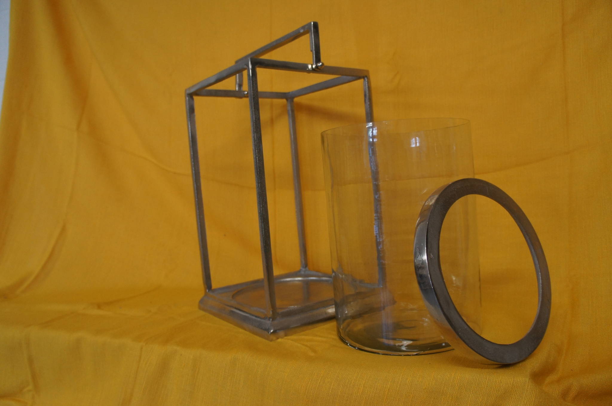 This three piece hurricane lamp is constructed of industrial grade nickel, and feature a heat resistant glass cylinder with a removable nickel lip. Perfect for decorative candles or as an accent piece in your home or office.