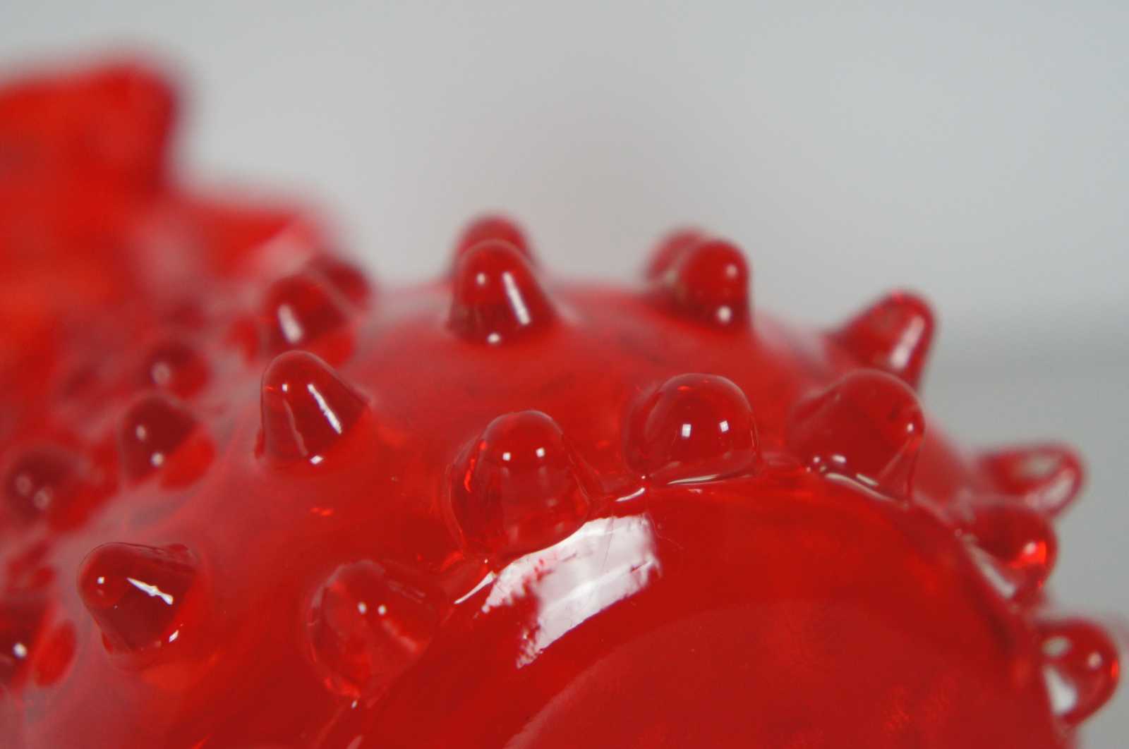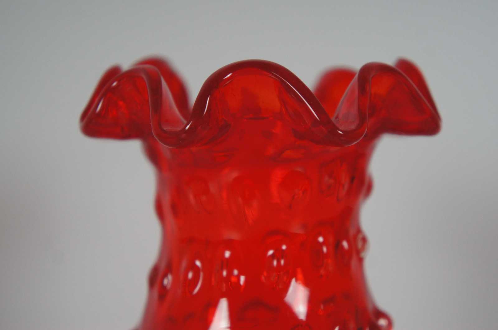 Vintage ruby red ruffled top hobnail glass vase.