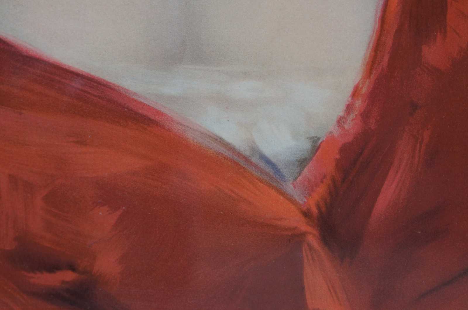 Antique chromolithograph advertising print after Angelo Asti portrait of a maiden in red, Includes a Victorian era mahogany frame