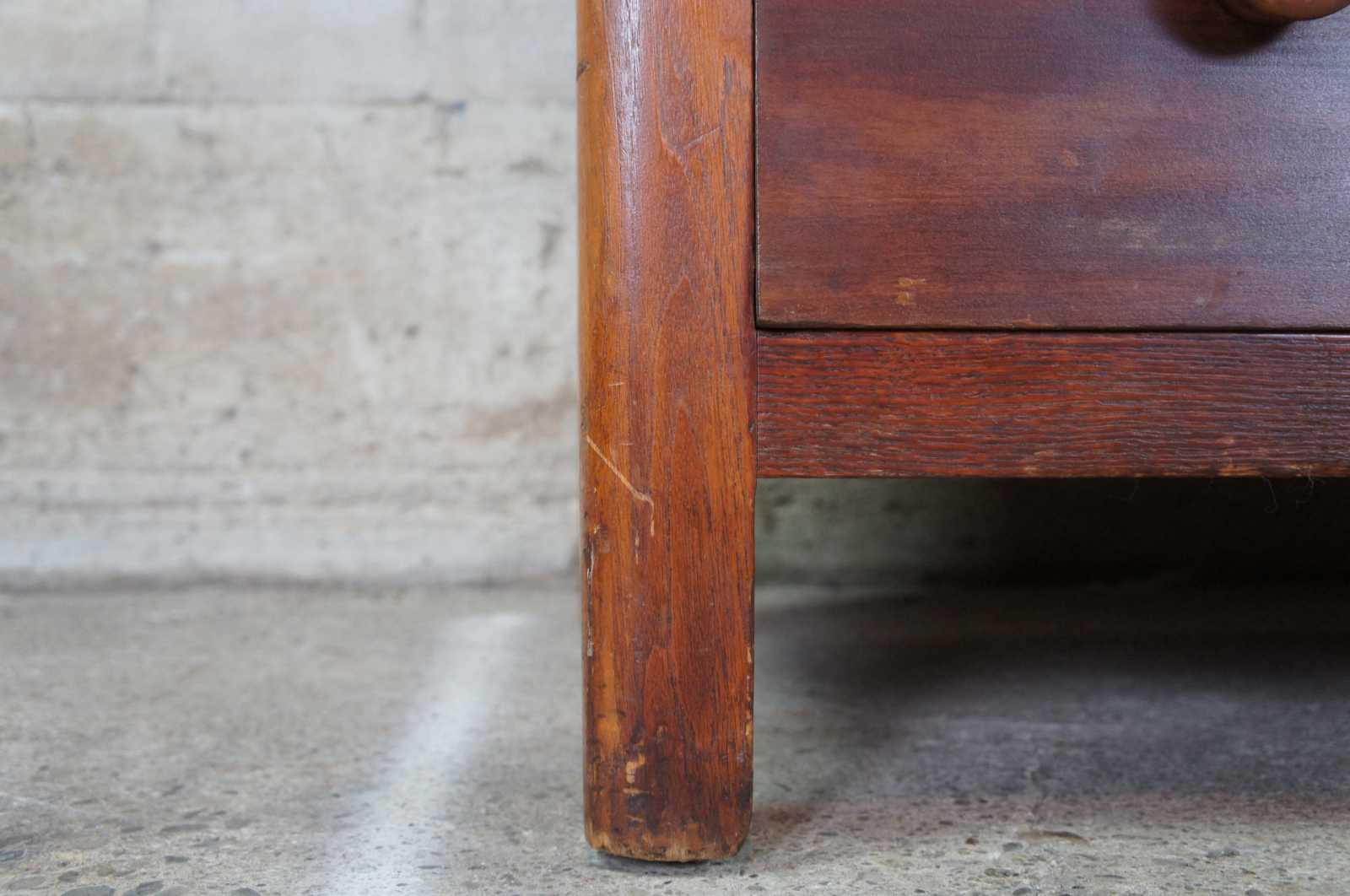 Civil War era chest of drawers. Made of cherry featuring three hand dovetailed drawers with turned knobs, paneled sides, and backsplash.