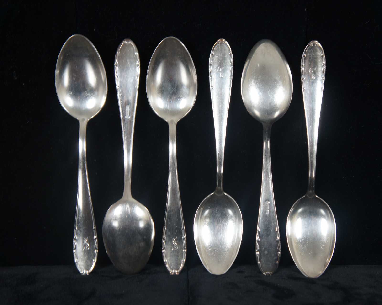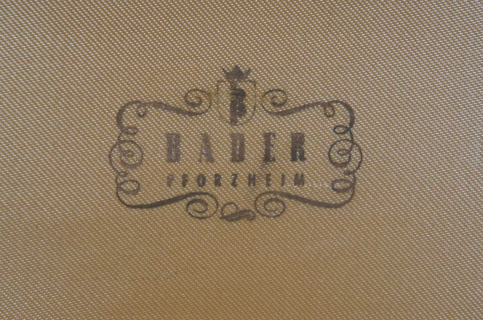Vintage Bader 90 Pforzheim Nichtrostend silver plate 6 place setting flatware and faux snake skin chest. Monogrammed with an S.