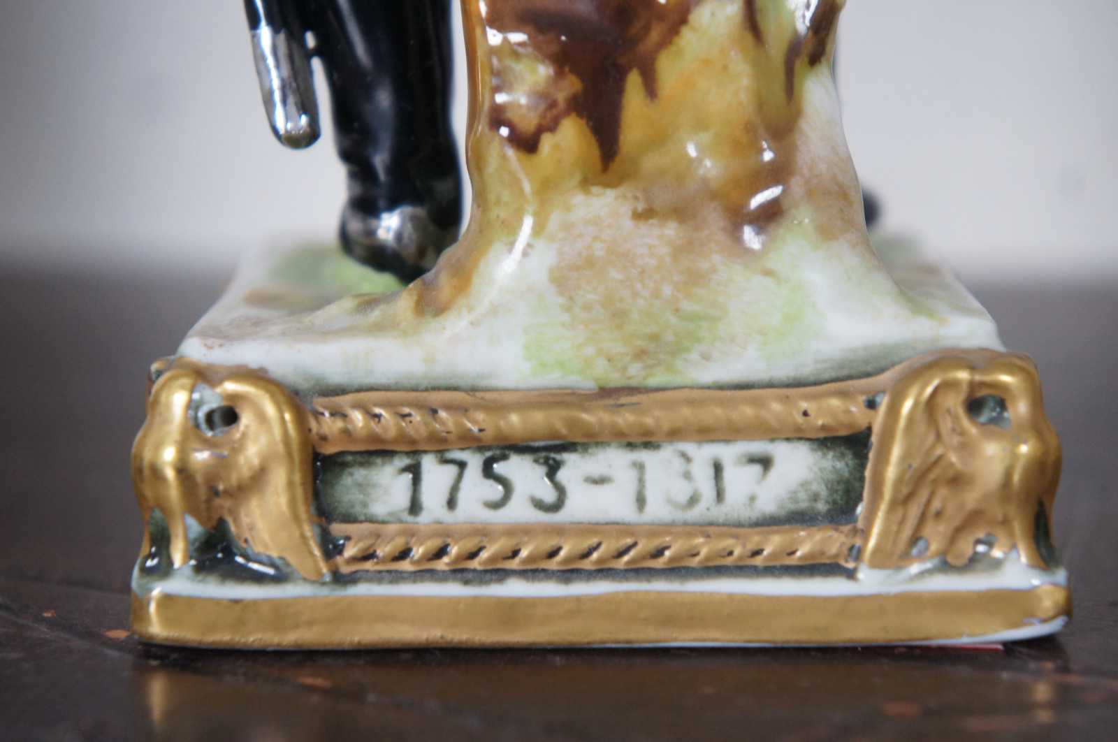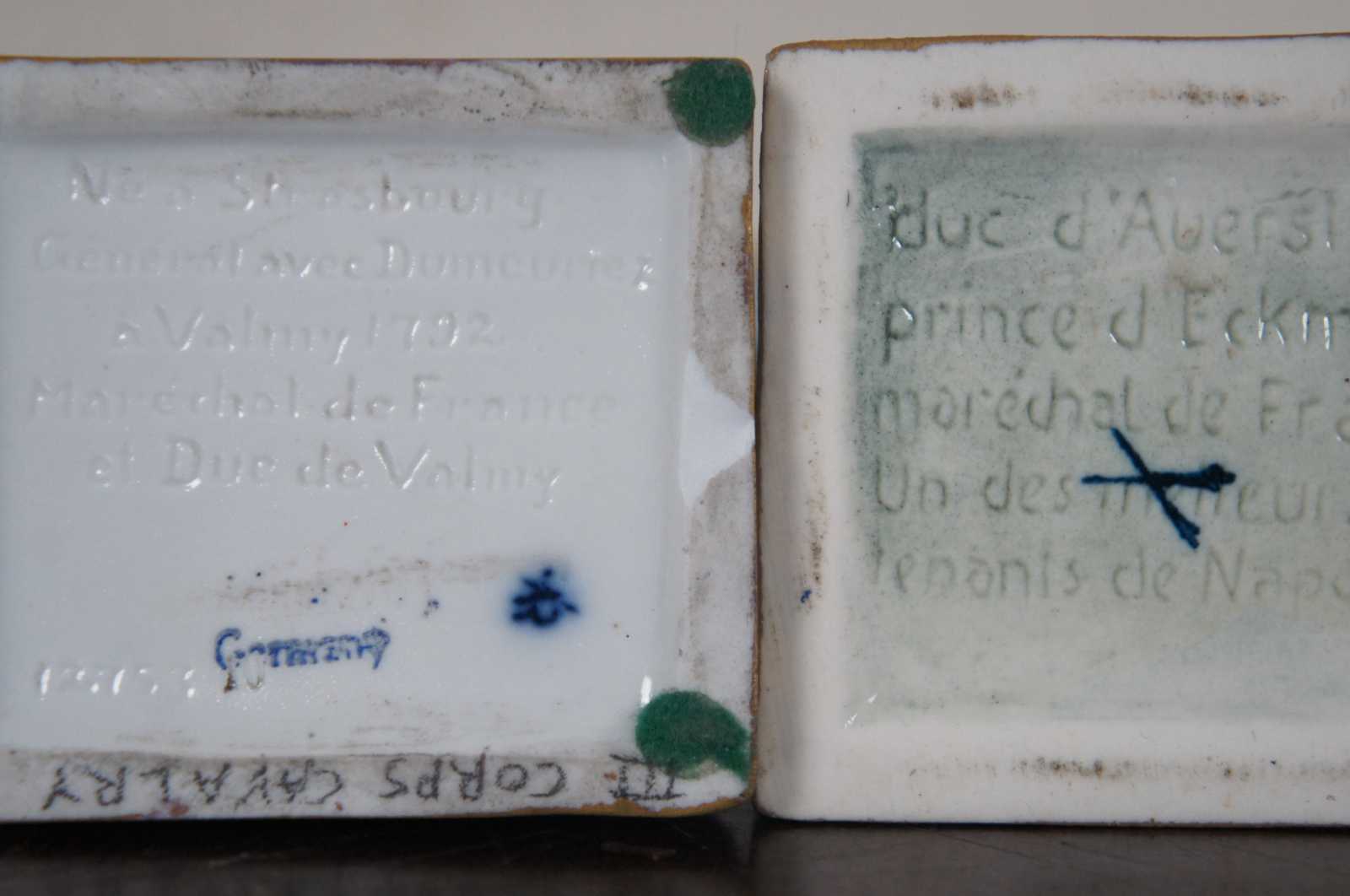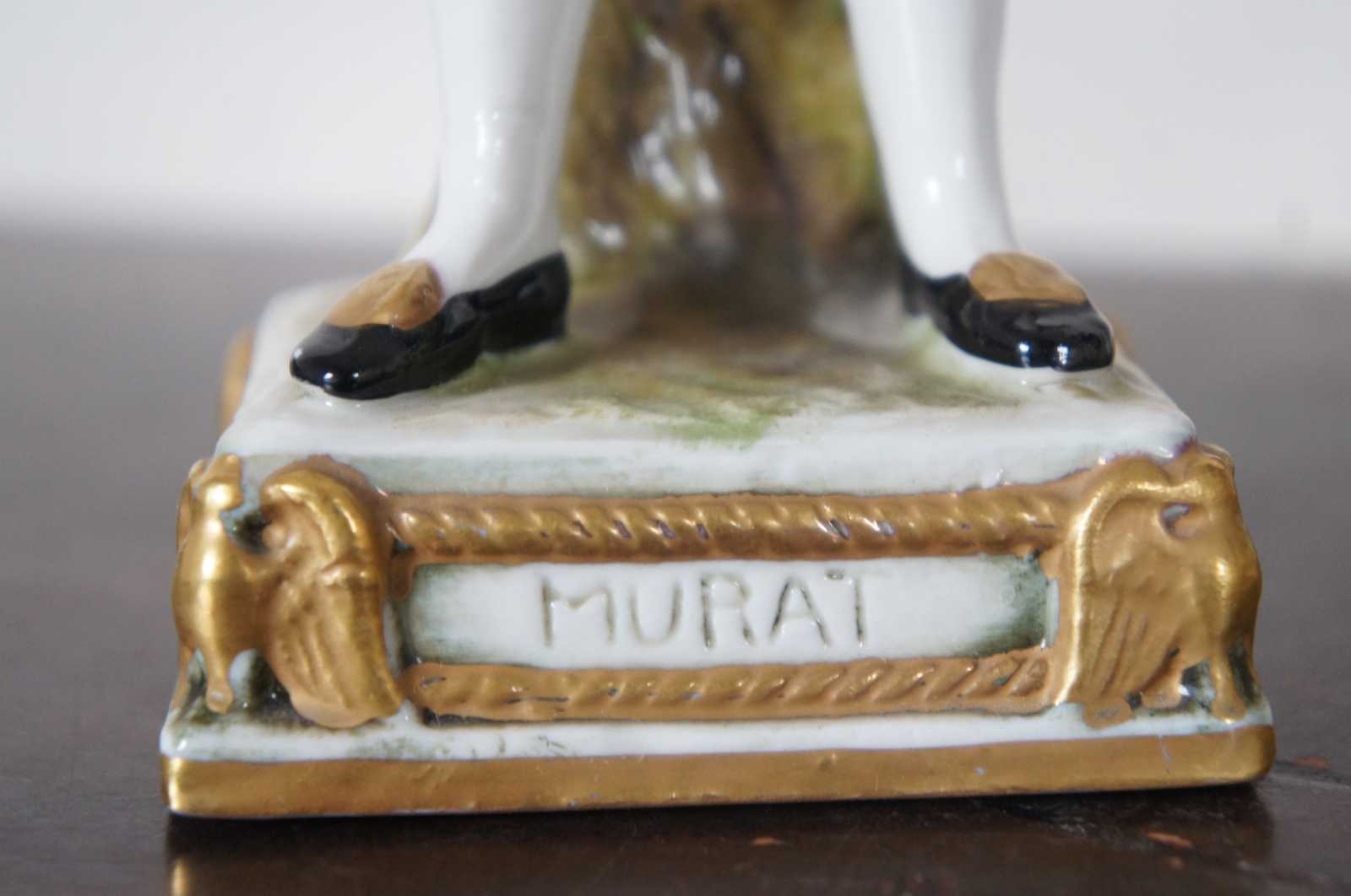 A rare and impressive lot of six Scheibe-Alsbach/ Meissen and Burdois & Bloch porcelain figurines portraying Napoleonic military commanders Joachim Murat, Andre Massena, Marquis de La Fayette, François Christophe de Kellermann, Louis-Nicolas Davout, Louis-Gabriel Suchet. 4 of the 6 figures are very difficult to acquire and rarely come up for sale.