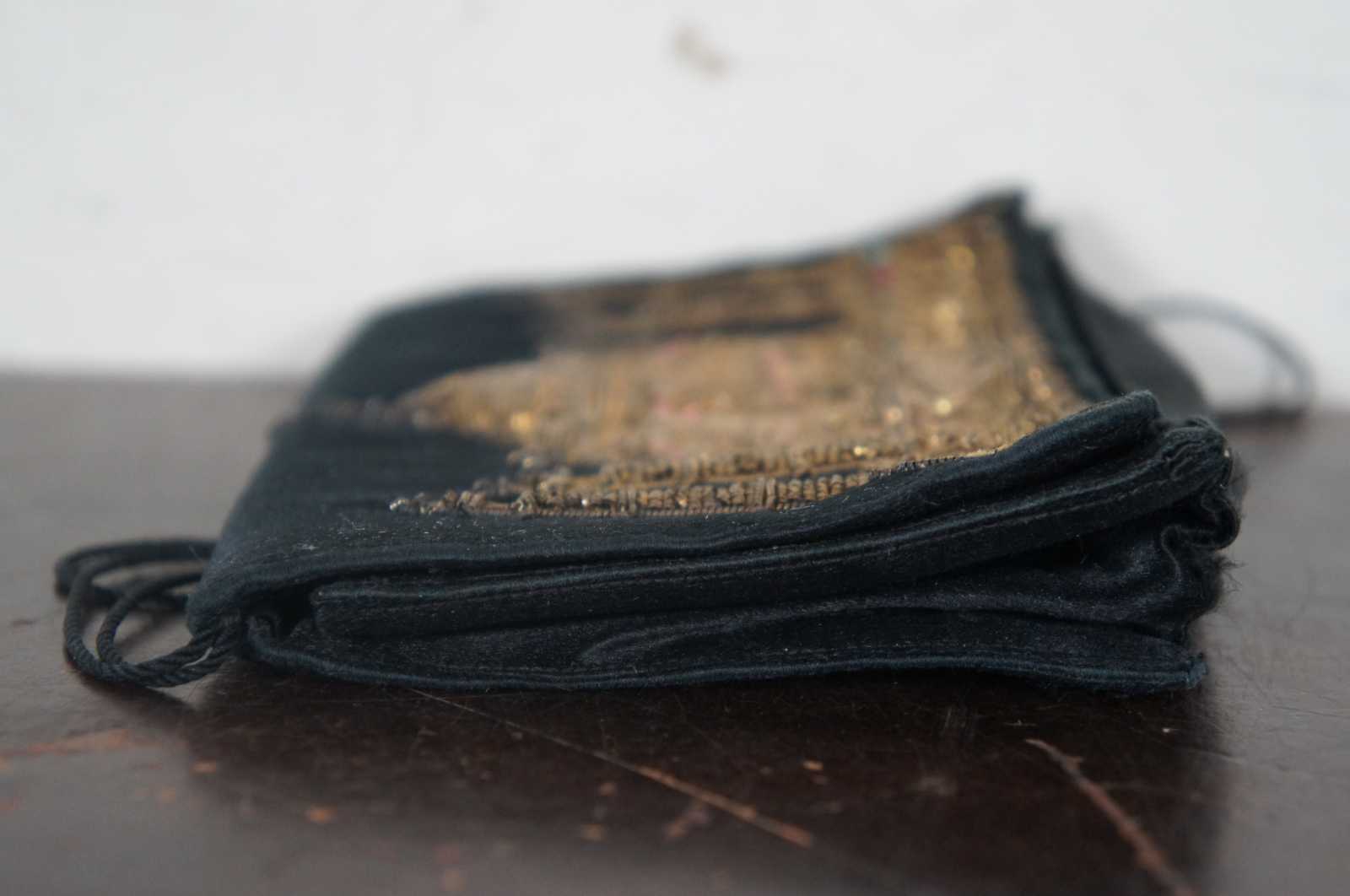 Vintage black silk clutch purse with the Taj Mahal embroidered in gold and sequins on the front.