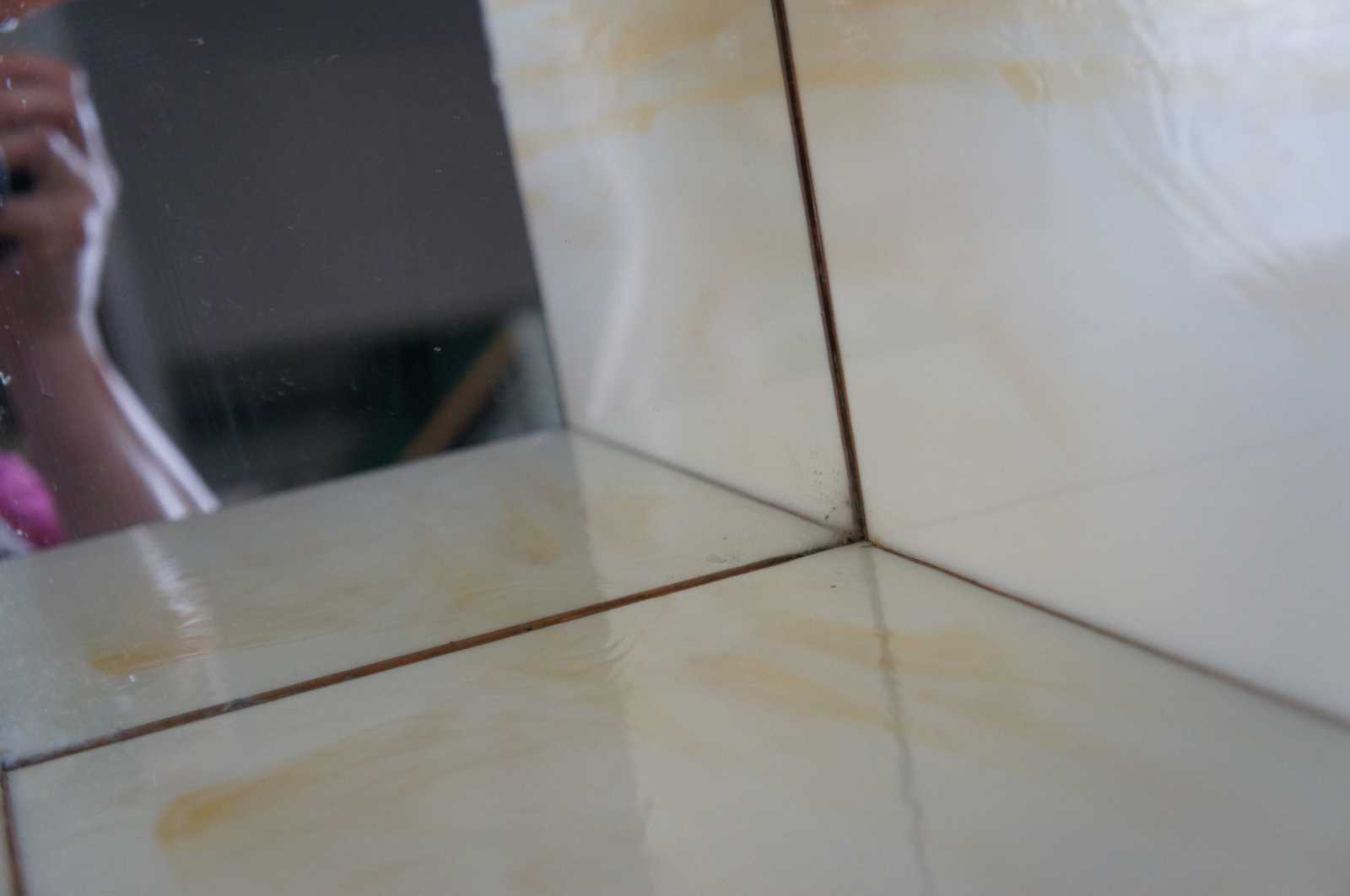 Asymmetrical square waste basket with alternating sides of slag glass and floral prints with a mirrored interior; made by Willan F. Willant, marked on the base.