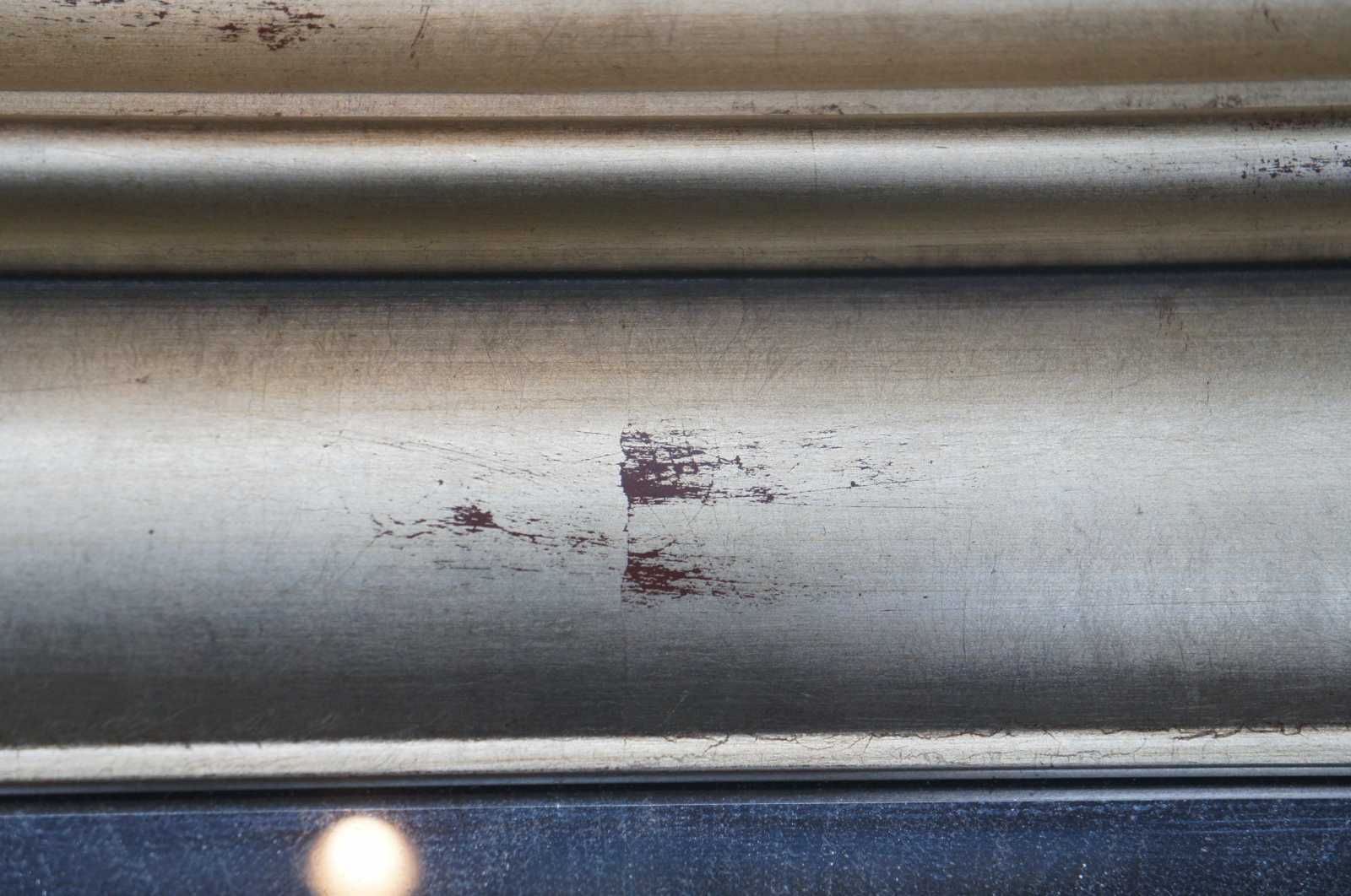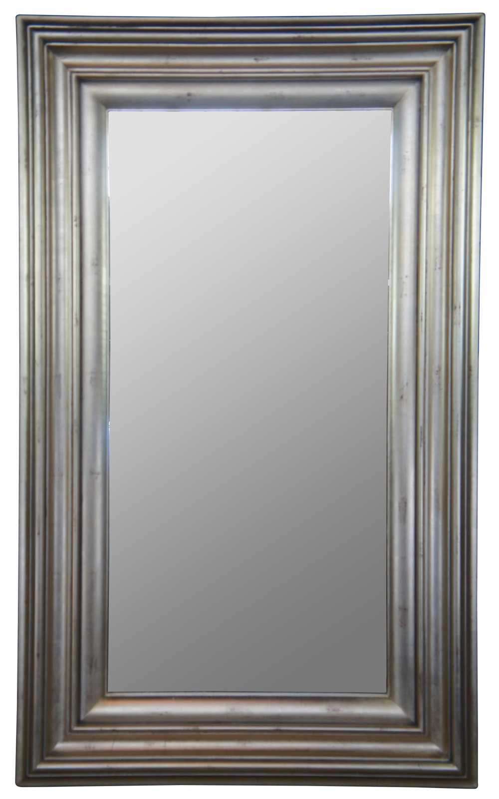 Oversized modern wall mirror. Great for user over a mantel/ along a wall. Black and gold mottled finish with beveled glass.