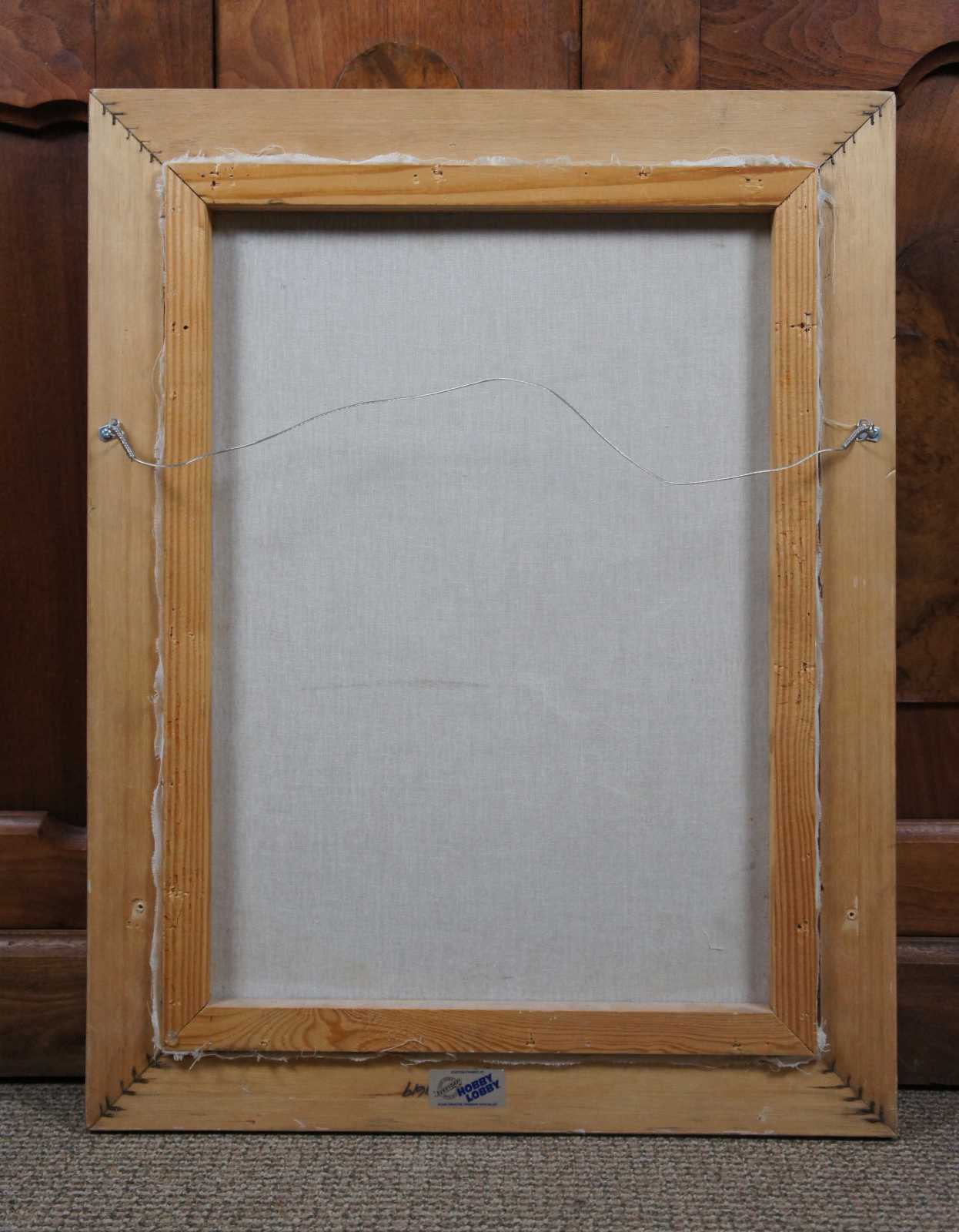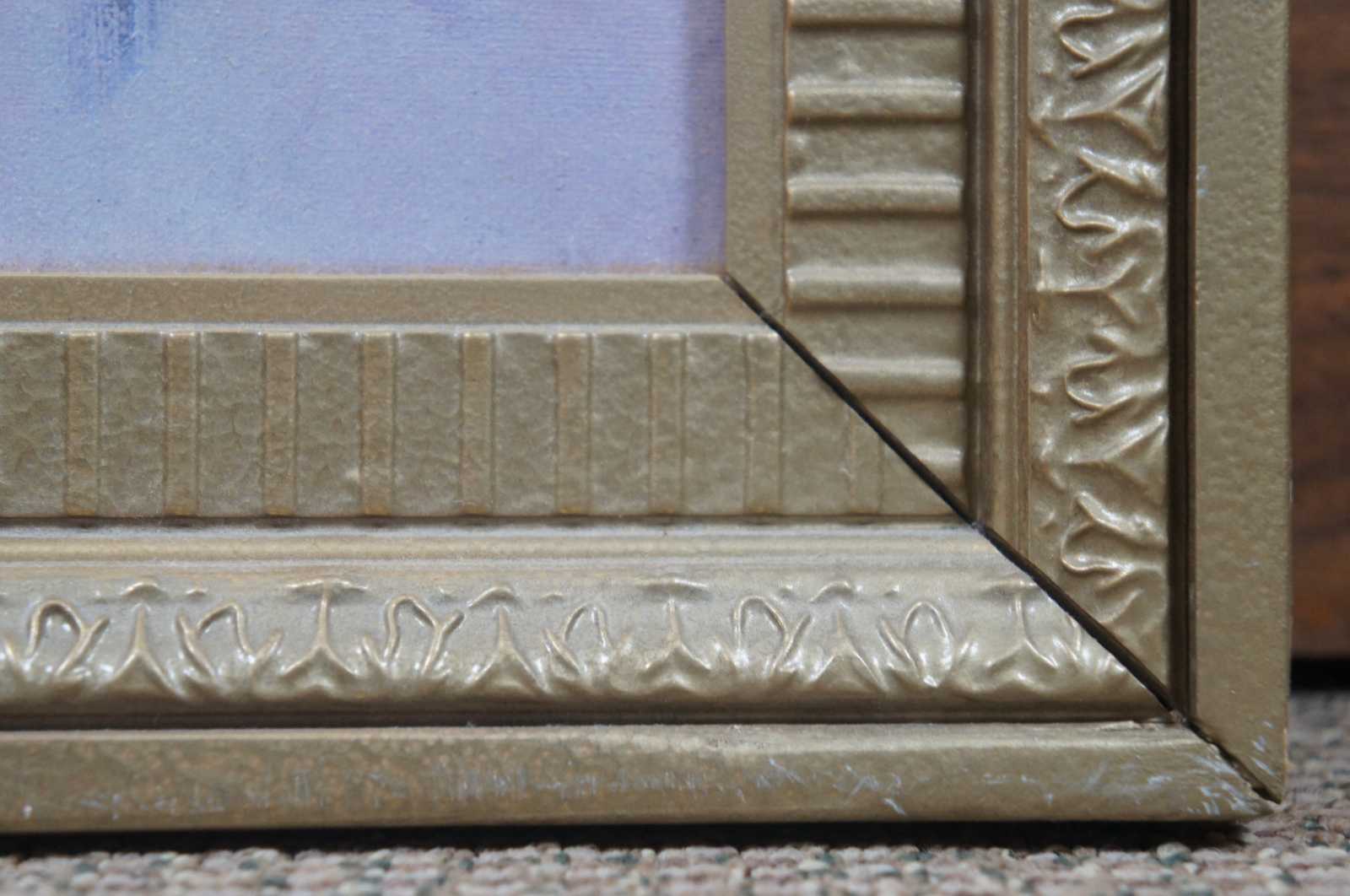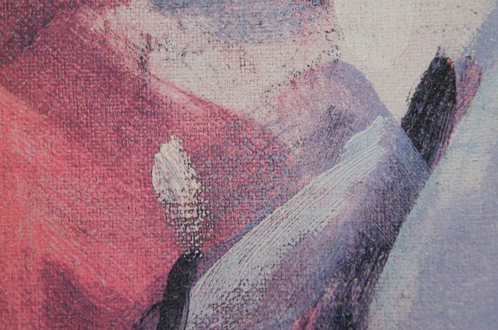 Vintage print on stretched linen showing a semi-impressionist portrait of a young girl dressed in blue and white.