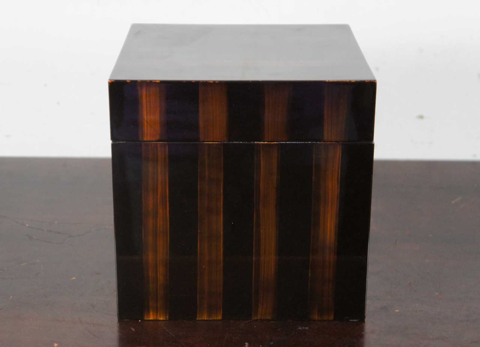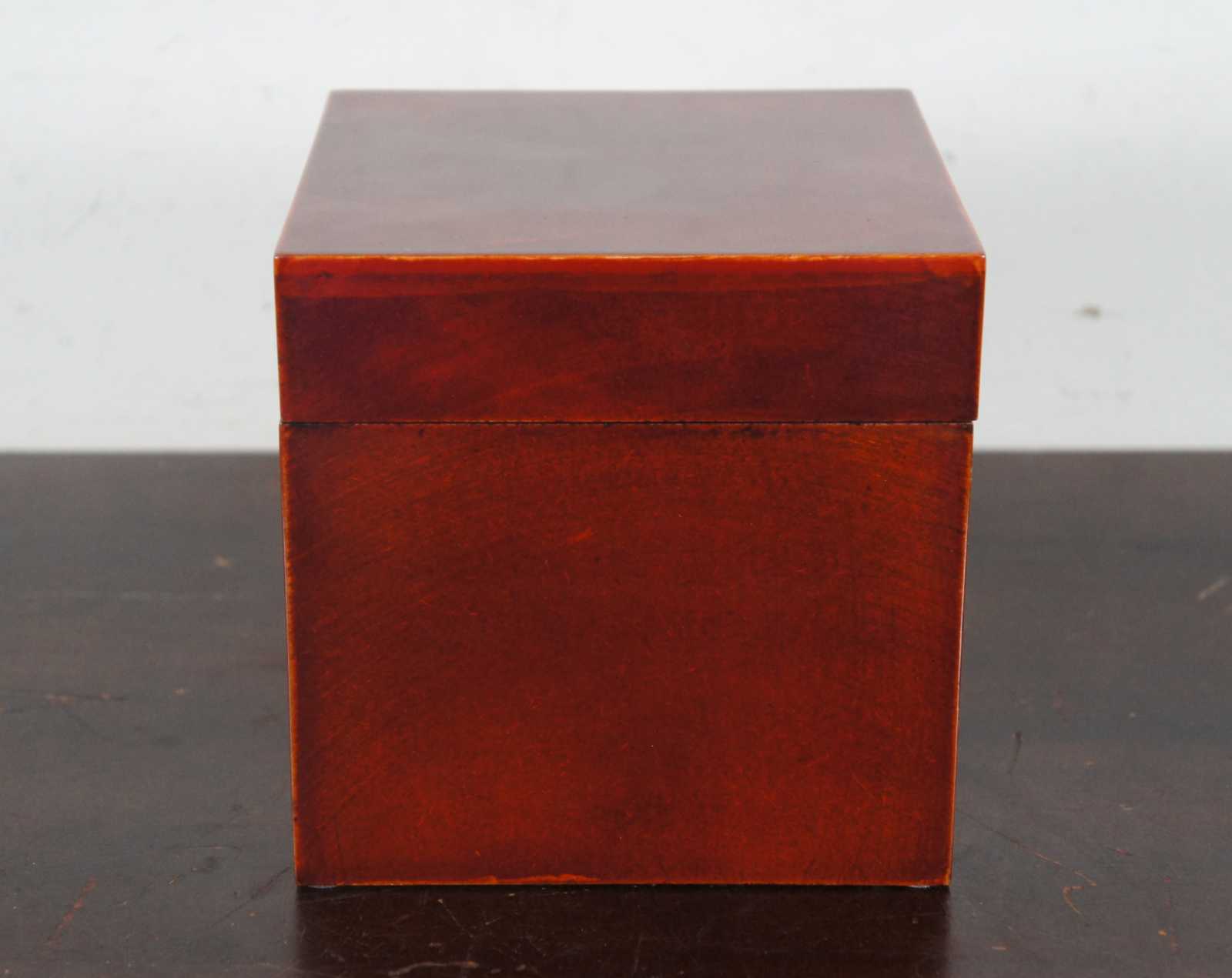 Set of three high gloss lacquered wood nesting cube boxes.