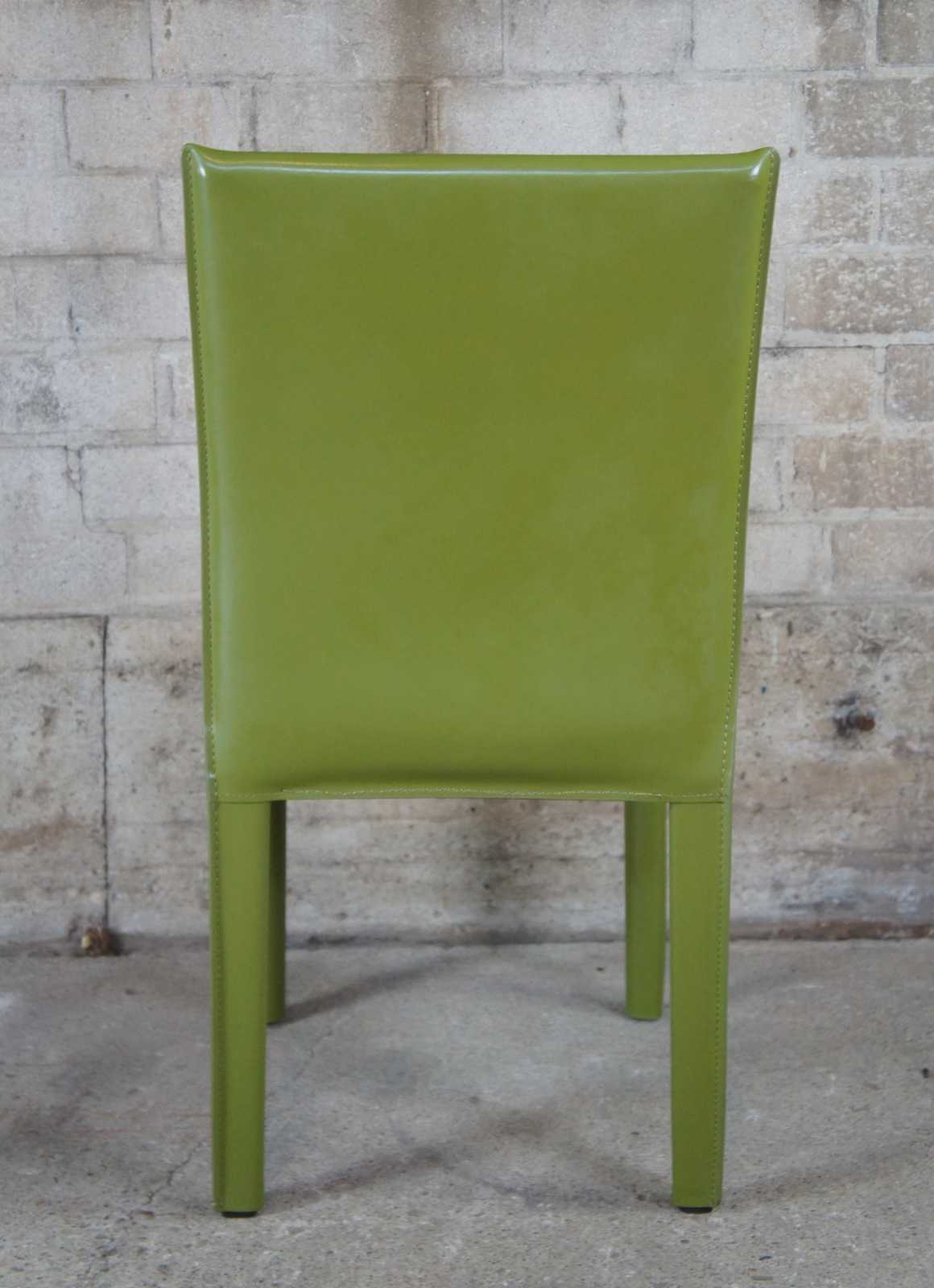 Four vintage Maria Yee bonded leather side dining chairs.