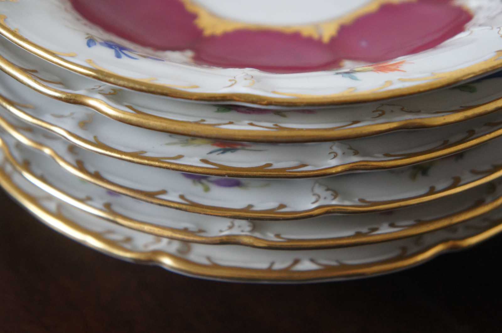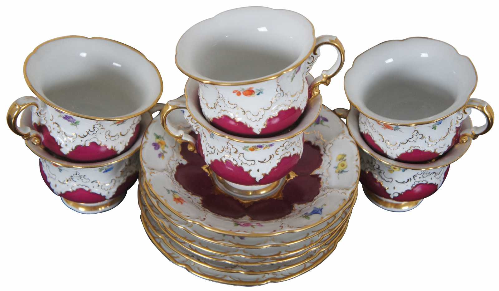 Twelve piece set of Antique Meissen china. Porcelain, blue swords marks 1st and 2nd choice, form number B-154, B-form purple with scattered flowers