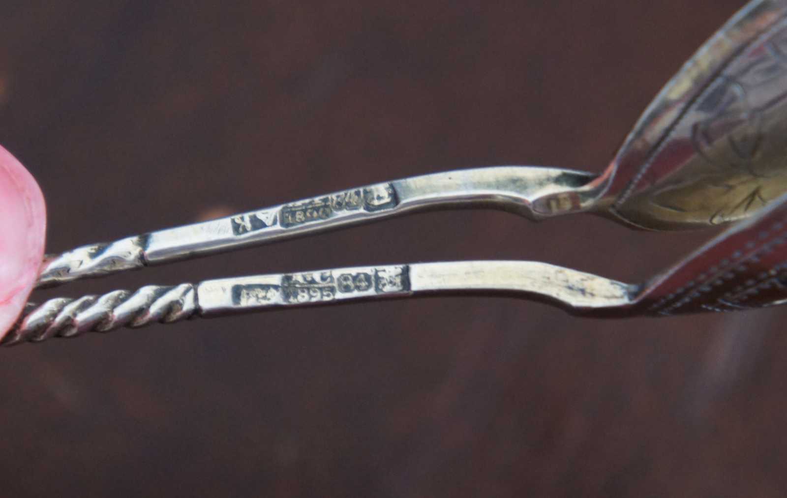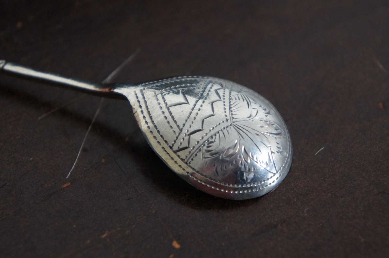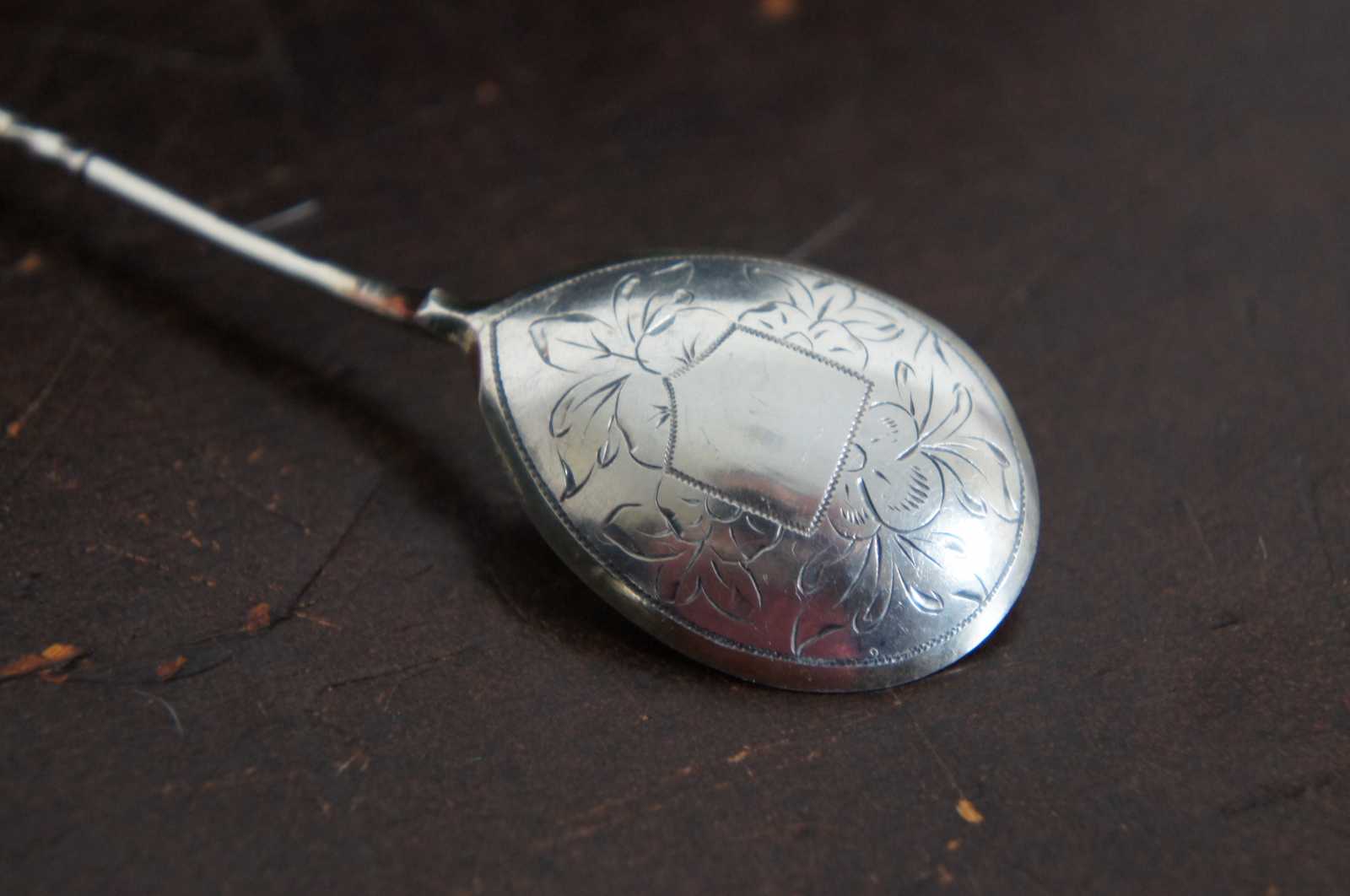 Pair of 19th century imperial Russian sterling silver coffee spoons with spiral handles and etched backs.