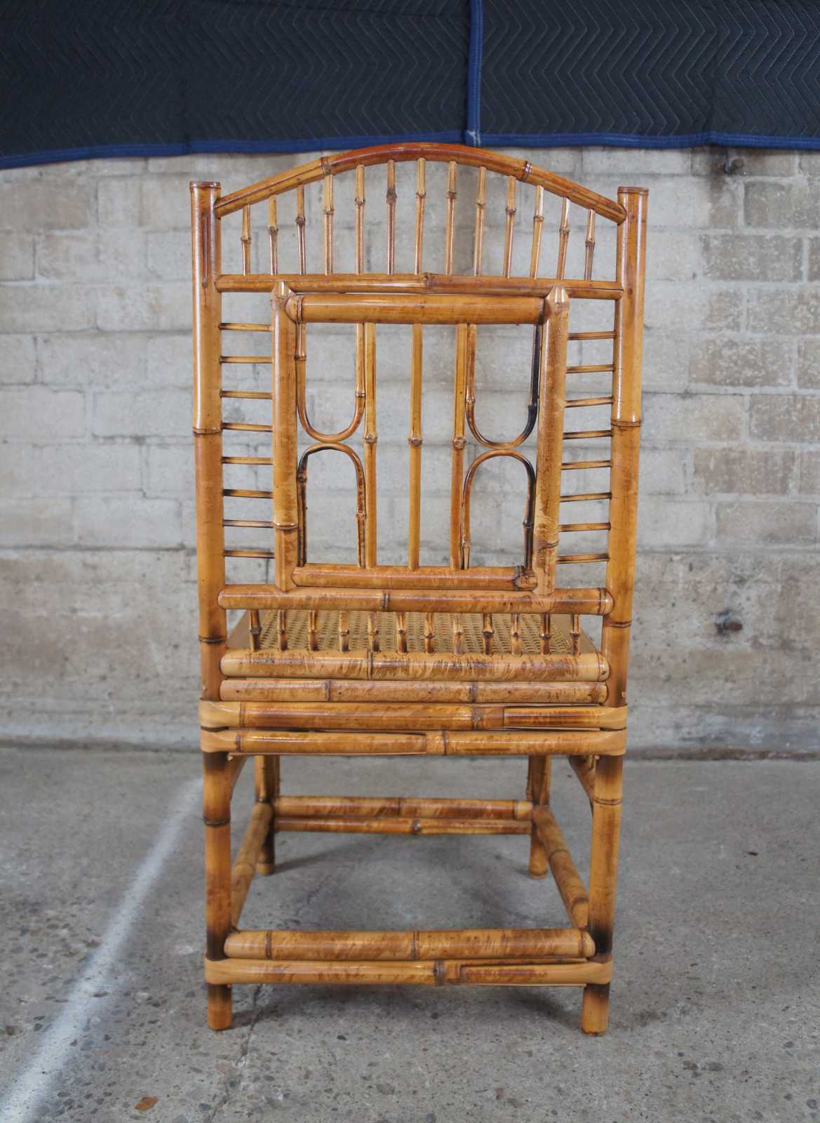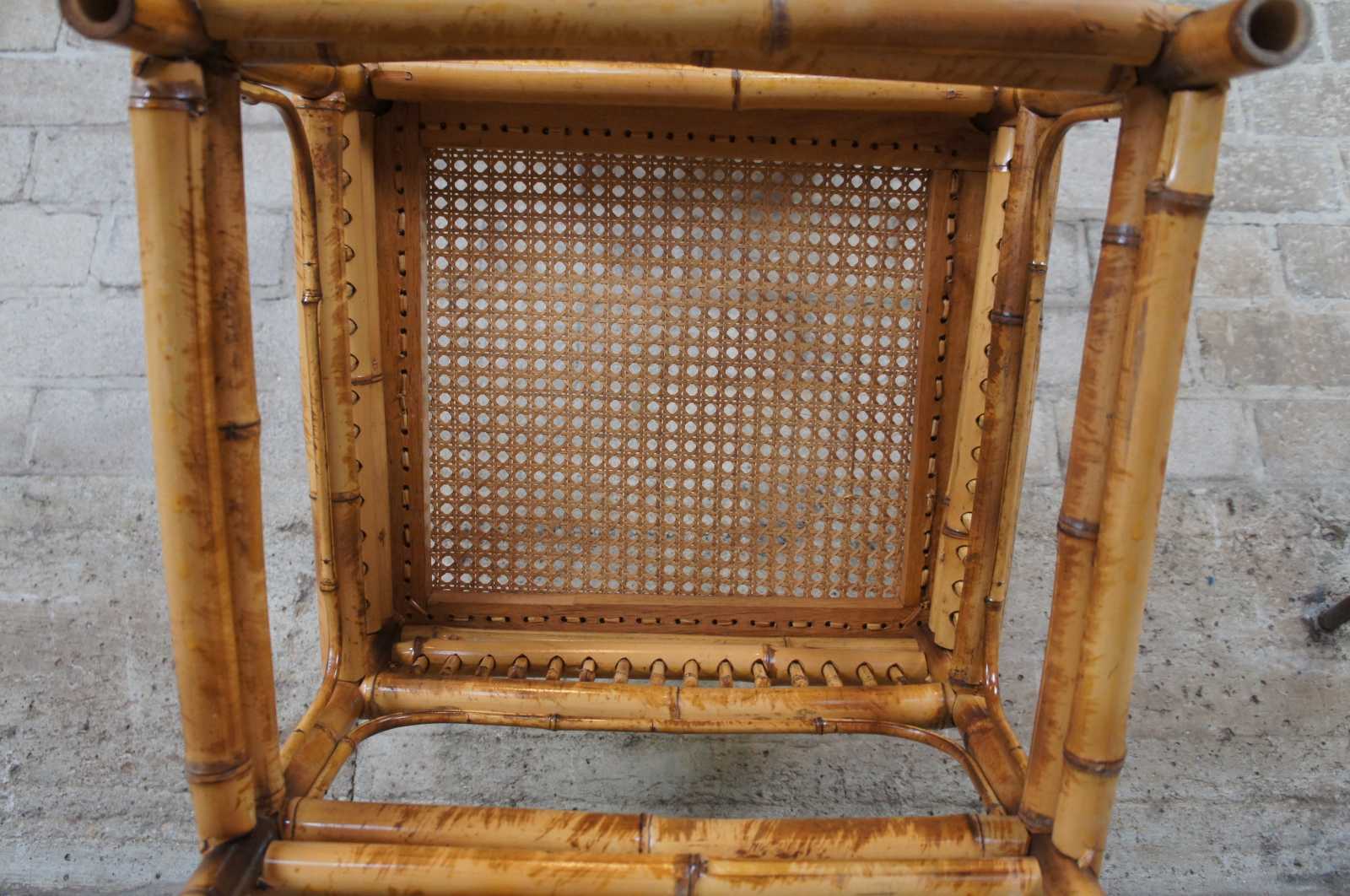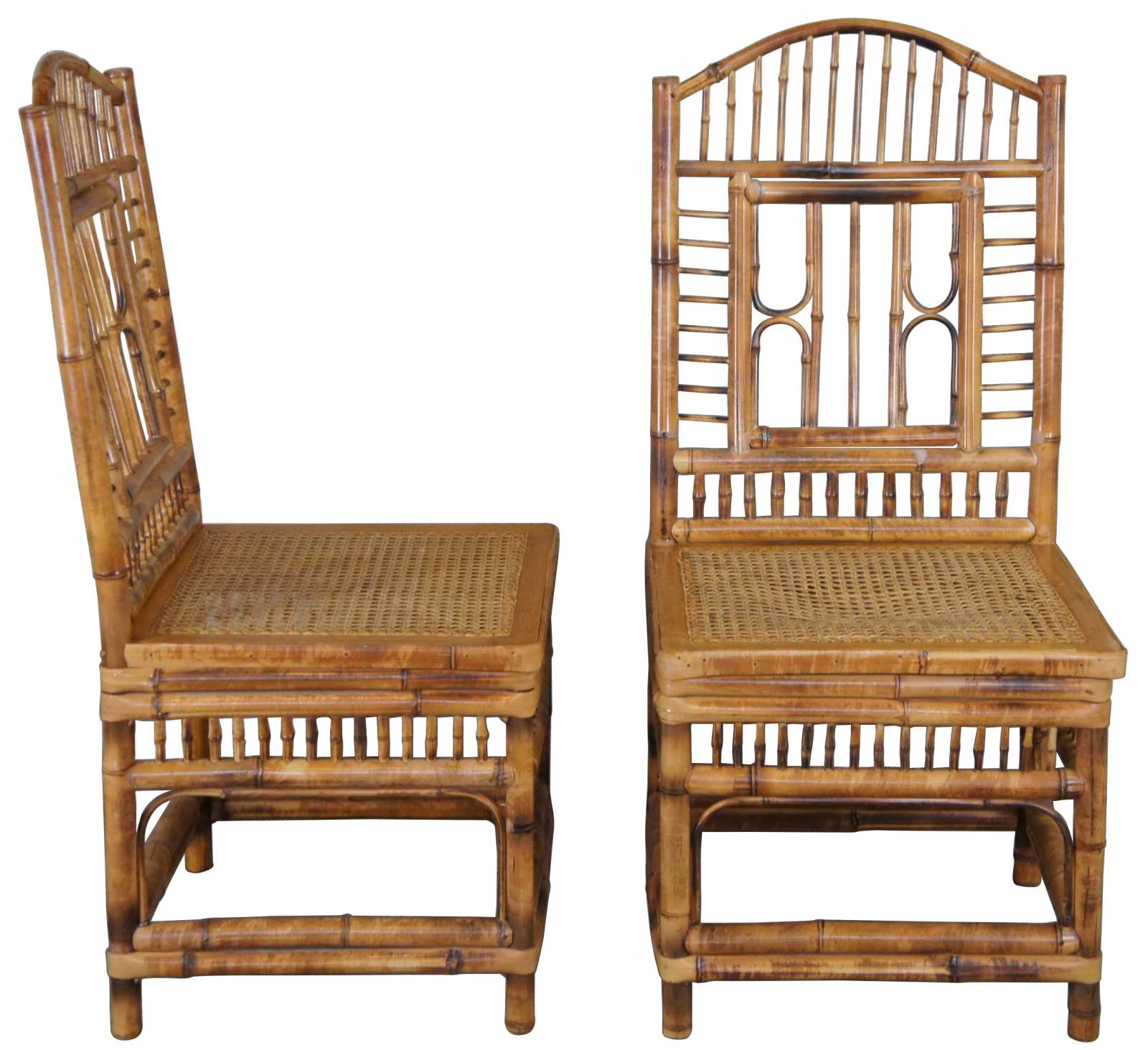 Mid 20th century bamboo and caned side chairs. Drawing inspiration from Victorian and Chinese Chippendale styling.