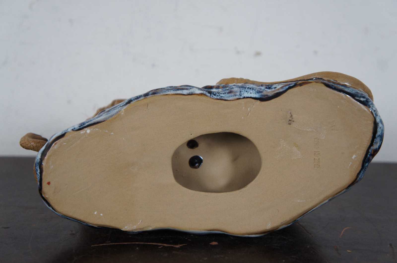 Vintage Chinese porcelain figurine of a lion fighting a snake styled after a bronze sculpture by Antoine-Louis Barye. “Antoine-Louis Barye was a Romantic French sculptor most famous for his work as an animalier, a sculptor of animals. “