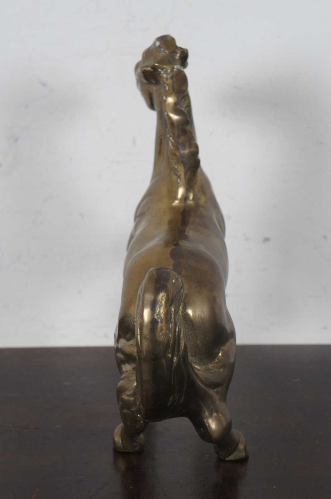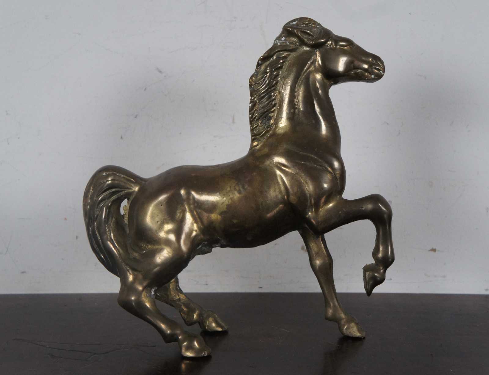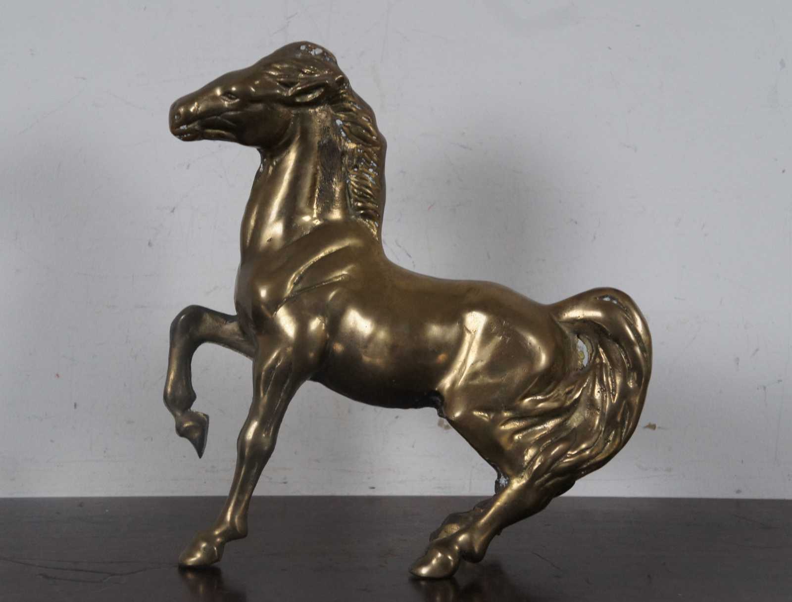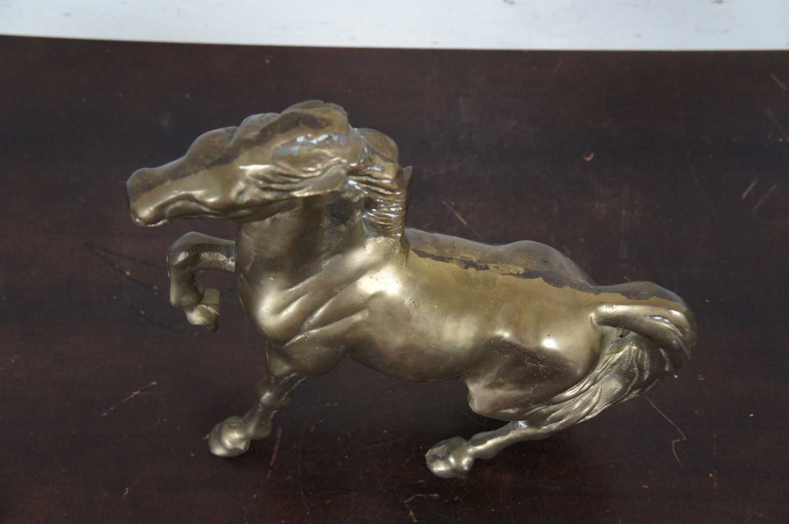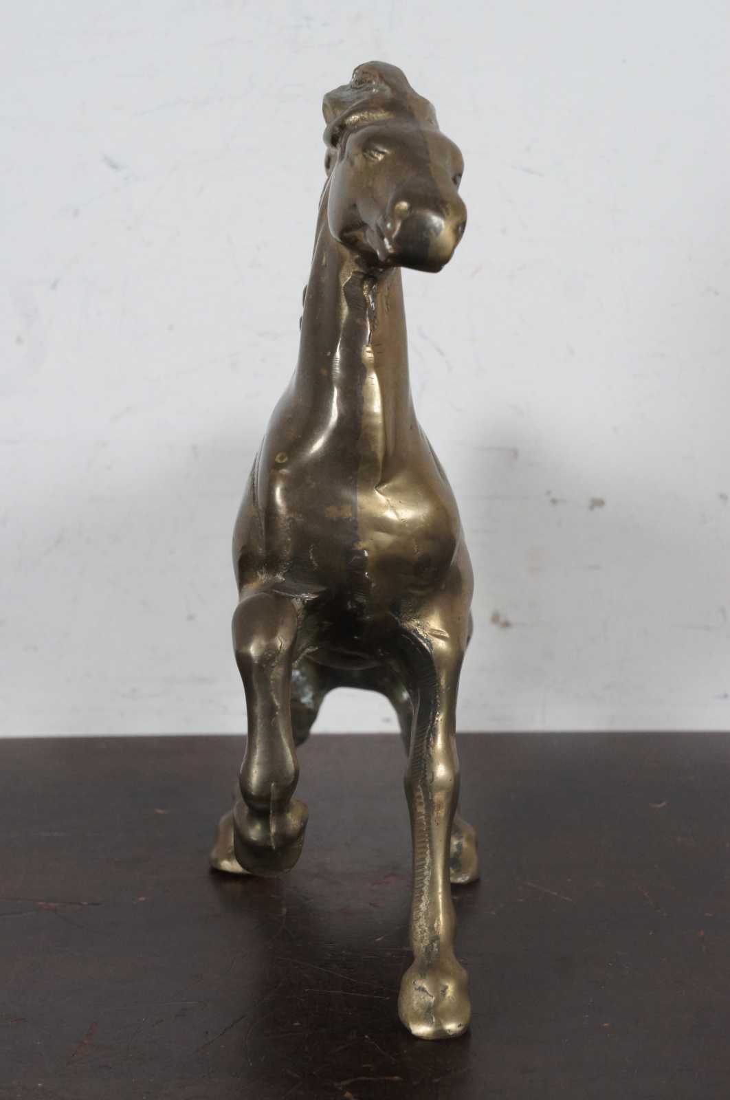 Vintage bright brass metal art horse sculpture.