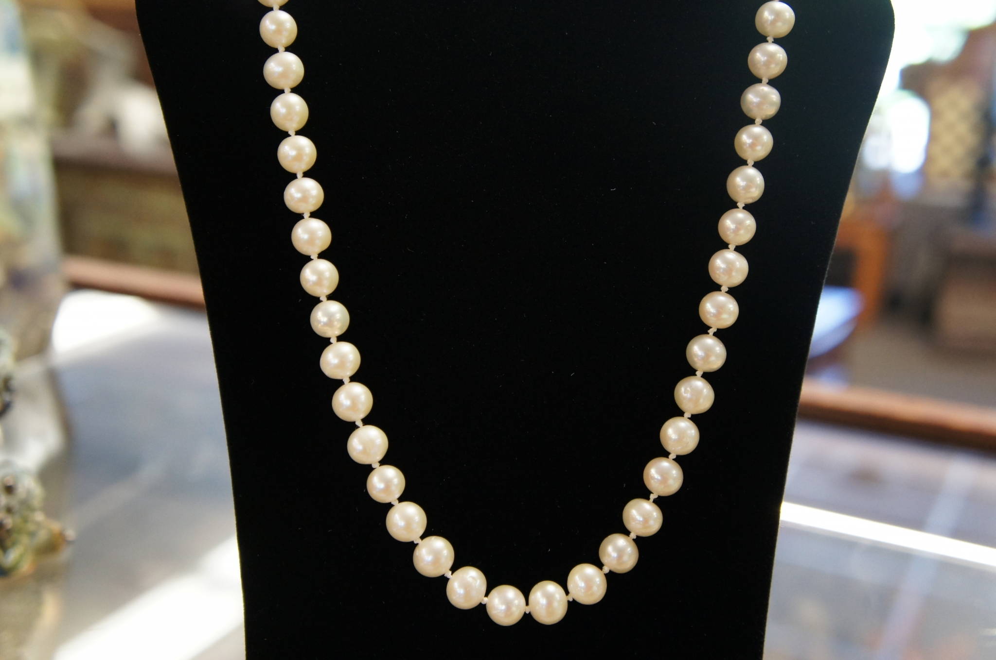 These exquisite white pearls come complete with a beautifully engineered 14/20 gold filled clasp that will assure these pearls never fall off! The pearls measure approx. 18'' inches and are in excellent condition. These would go well as a gift or on your neck.