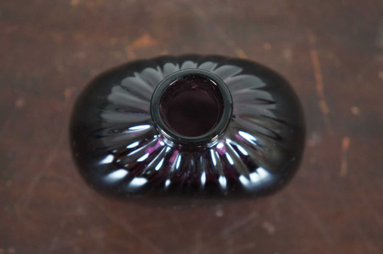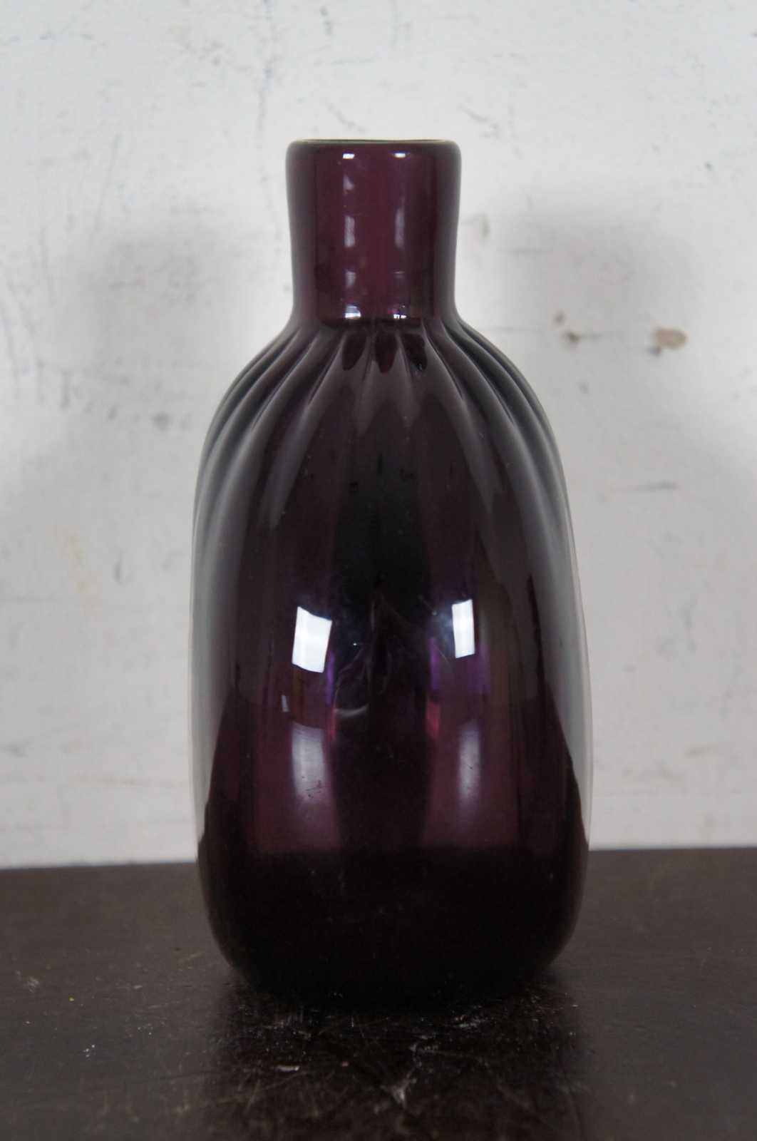 Vintage hand blown deep purple art glass vase fluted accents, signed MMA on the base.