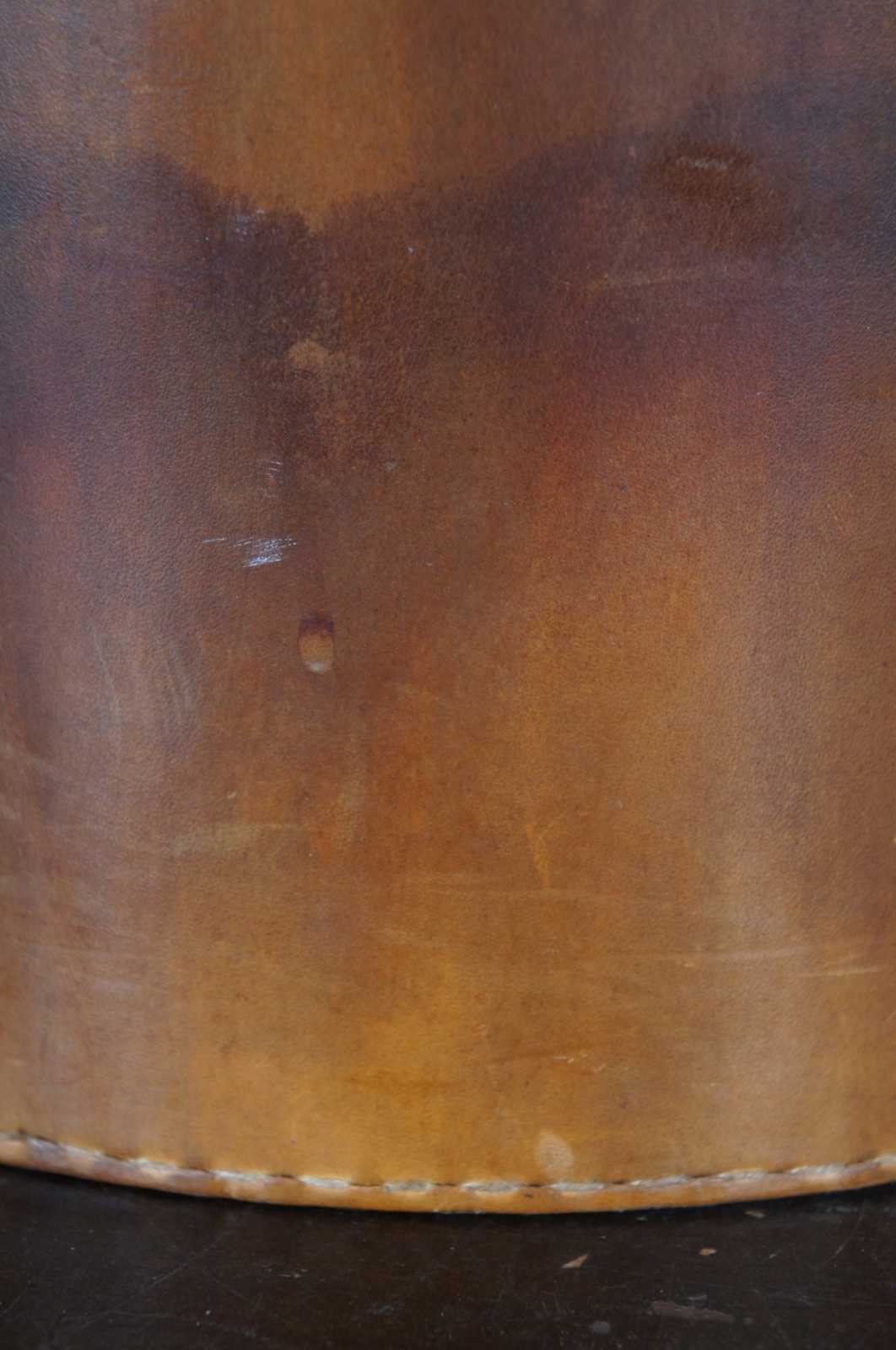 Vintage cylindrical brown leather waste basket, made in Poland.