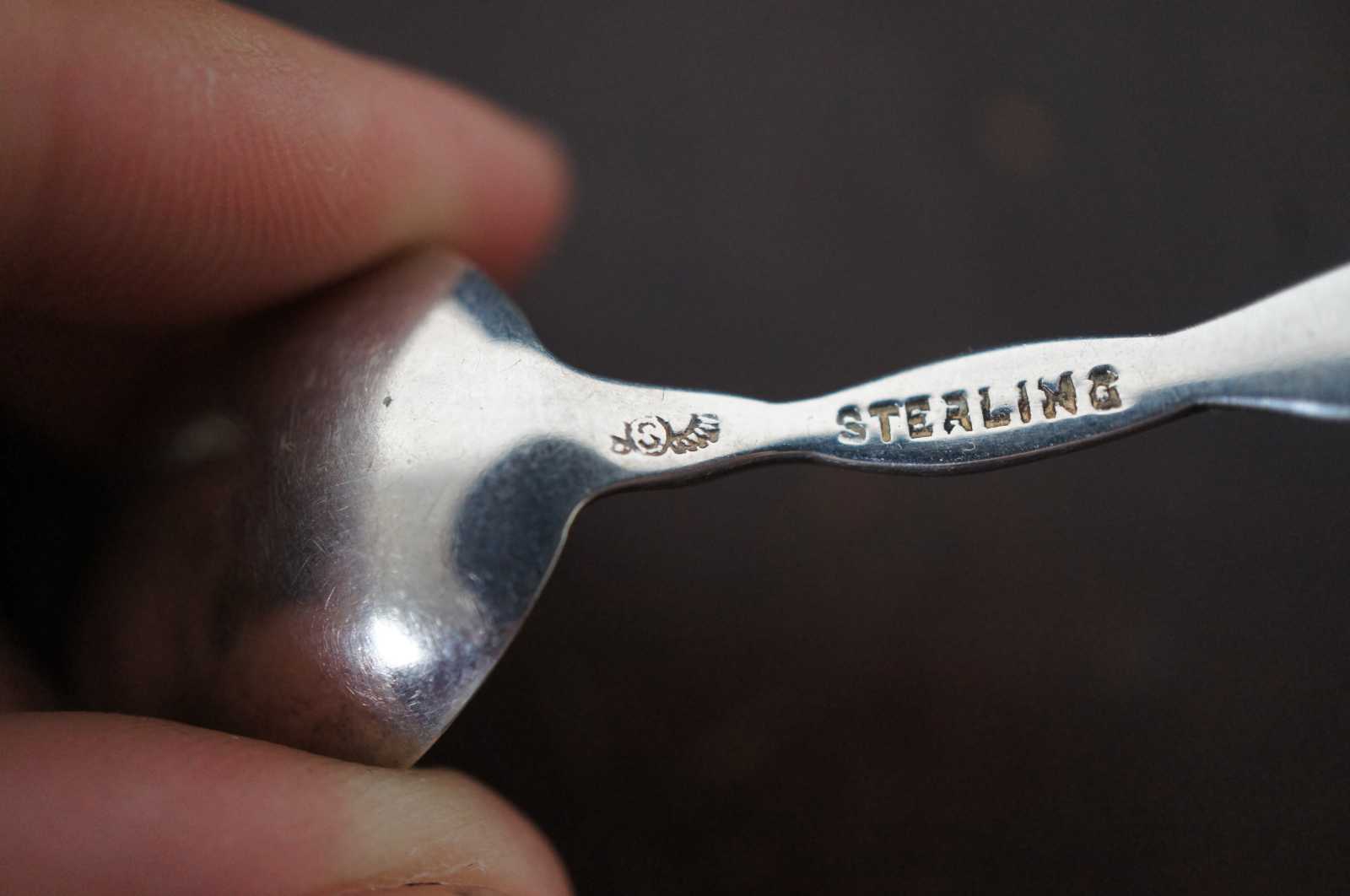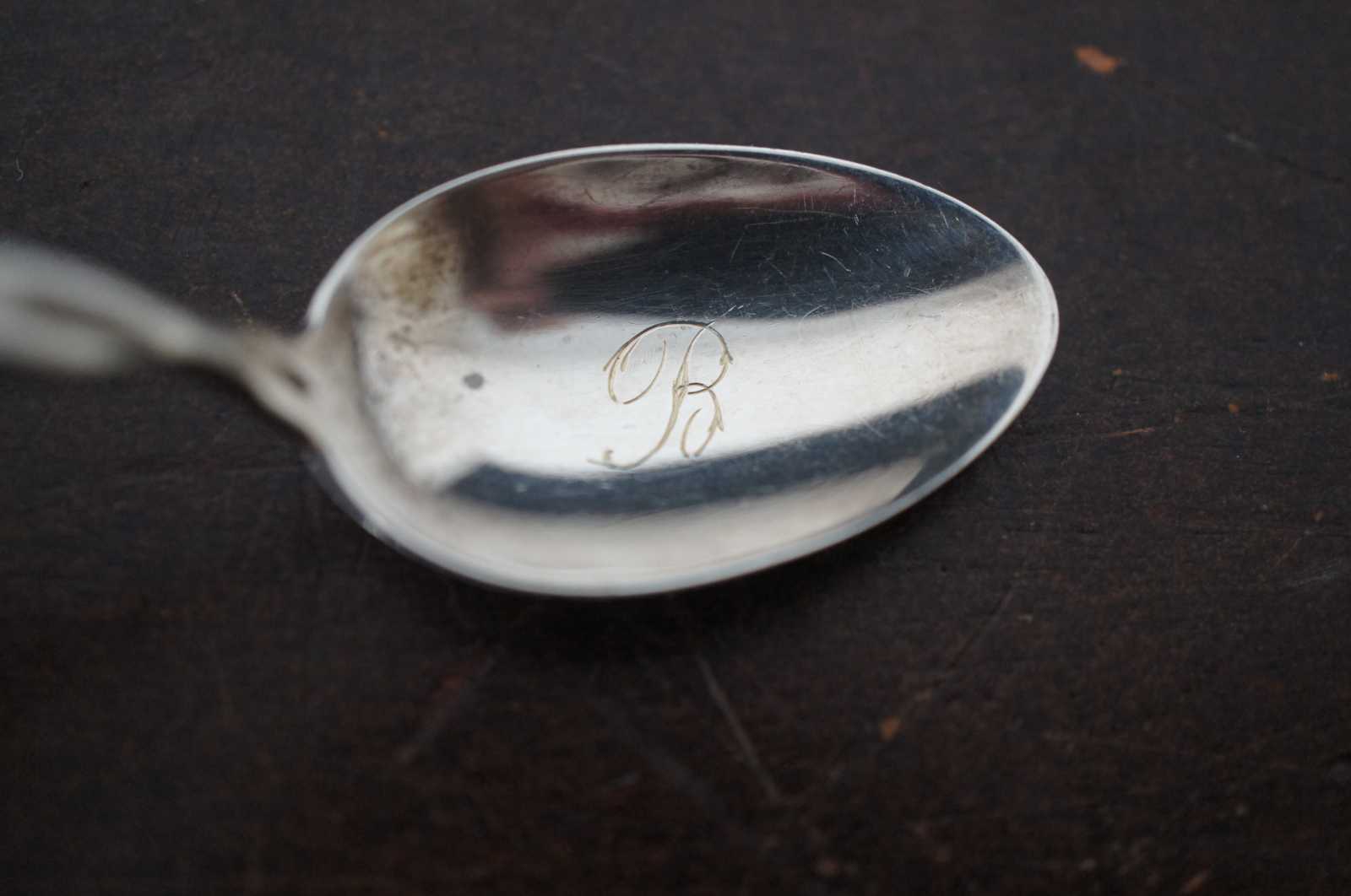 Antique sterling silver tea or coffee spoon by George W. Shiebler, monogrammed with a B in the bowl and “O.C.R. 1890” on the back of the handle. “George W: Shiebler (Baltimore 1846 - New York 1920) in 1875 purchased the business of Coles & Reynolds, manufacturers of silver spoons and in 1876 began the activity under his own name employing a work force of five men.