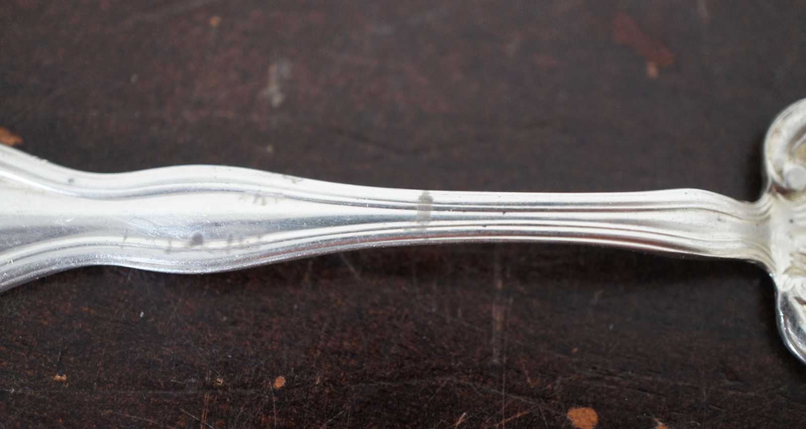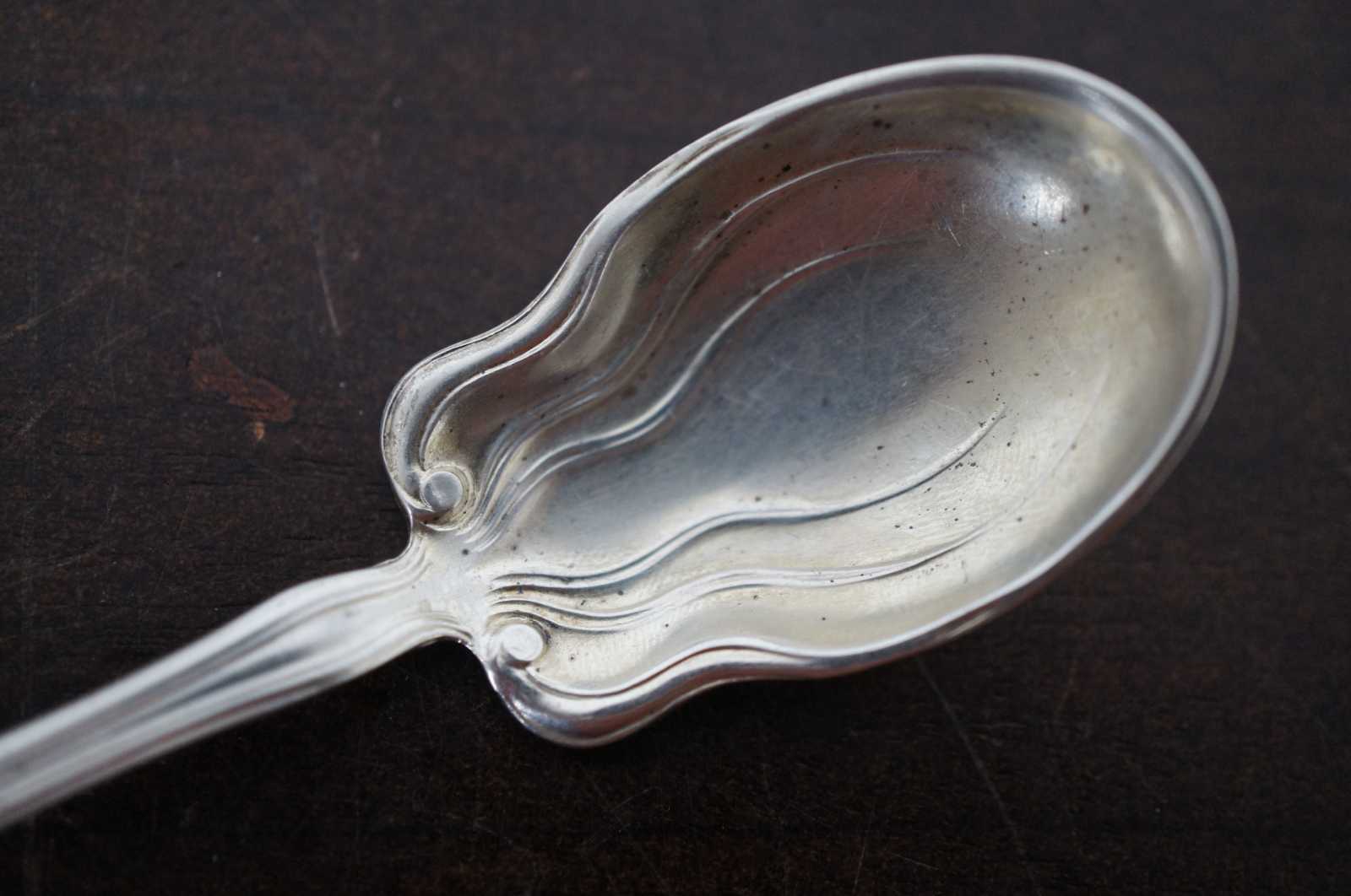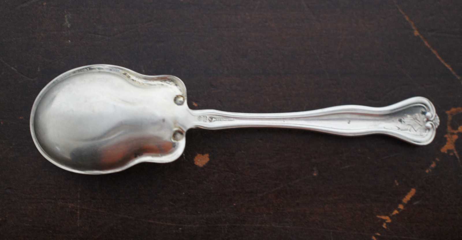 Antique early 20th century Watson sterling silver sugar spoon in the Mount Vernon pattern, engraved with a B. The origin of the firm traces back to 1874 when was formed in Attleboro, MA, the Cobb, Gould & Co. The founders were Clarence L. Watson, Fred Newell, Charles Cobb, Samuel Gould and W.A. Battey. The firm produced a line of jewelry goods, mainly gold plated. Between 1875 and 1880 Battey, Cobb and Gould withdrew from the partnership and Watson and Newell, the only ones left, formed a new firm operating under the name Watson & Newell (1880-1886). In 1887 Joseph R. Ripley joined to the business and the firm changed its name to Watson, Newell & Co. In 1891 also Edward L. Gowern entered the partnership. The business continued with success and, needing larger quarters, in 1894 the old Mechanics Mill property was bought opening the new factory in 1896. The name changed to Watson & Newell Co, while Mechanics Sterling Company was the name of the subsidiary flatware branch. In 1899 the firm obtained its first flatware patent (Clarence L. Watson) and began a wide production of flatware and souvenir spoons. Failing health forced Fred Newell to retire from the active participation to the firm shortly after the turn of the century. He remained as a non-active partner until his death (1910). In 1904 the sleeve and collar buttons division became a separate operating unit with the name of Standard Button Company under the direction of Ripley and Gowen. In this period the firm produced hundreds of sterling souvenir spoons depicting a variety of subjects. Beginning about 1900, Watson produced a line of sterling hollow-ware for Wilcox & Wagoner of New York using the "sword and laurel wreath" mark. Wilcox & Wagoner closed down c.1905 and Watson continued producing with this mark until 1929. In 1920 "The Watson Co" was incorporated taking in charge all the silver operations. Many new flatware patterns continued to be introduced on a regular basis. At the death of Clarence L. Watson (1930) the management of the firm was assumed by his son-in-law Grover Richards. In 1955 the business was sold to R. Wallace & Sons. The dies of Watson souvenir spoons (as many as 3000), sold by Wallace, in the 1970s were in unused possession of The Inman Co Inc. of Attleboro, MA.