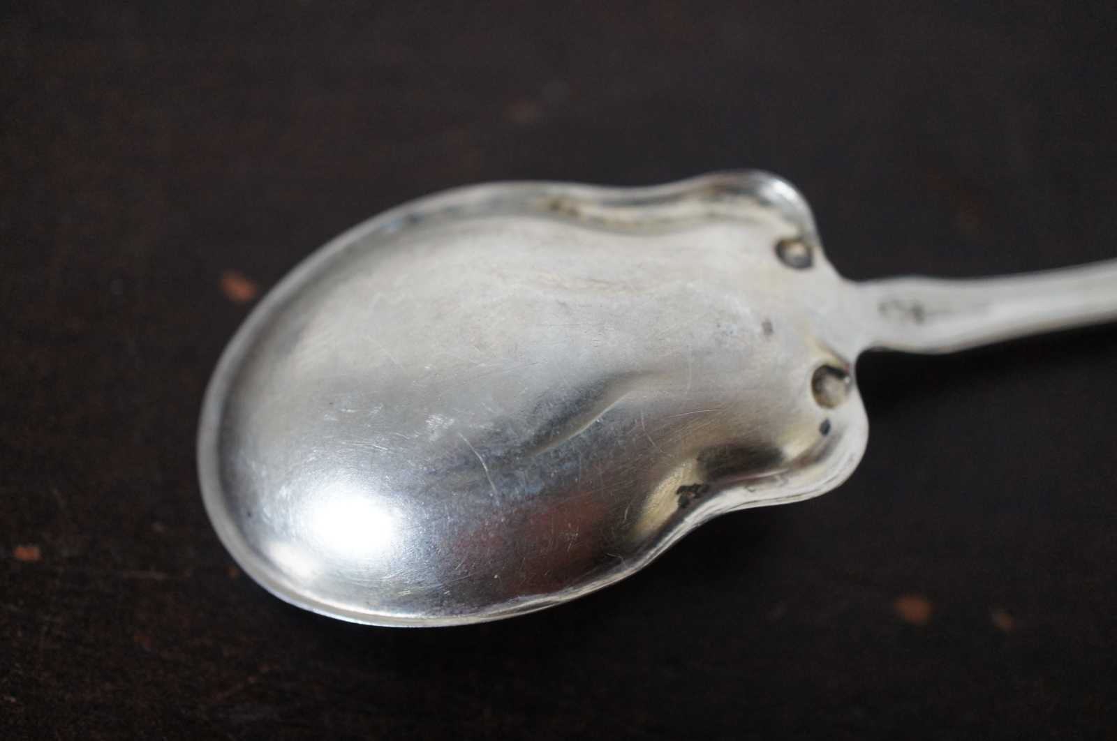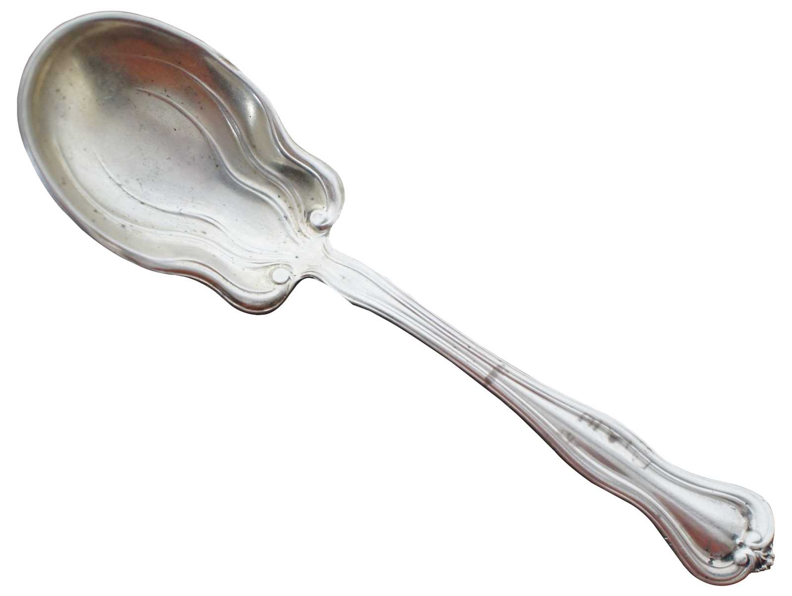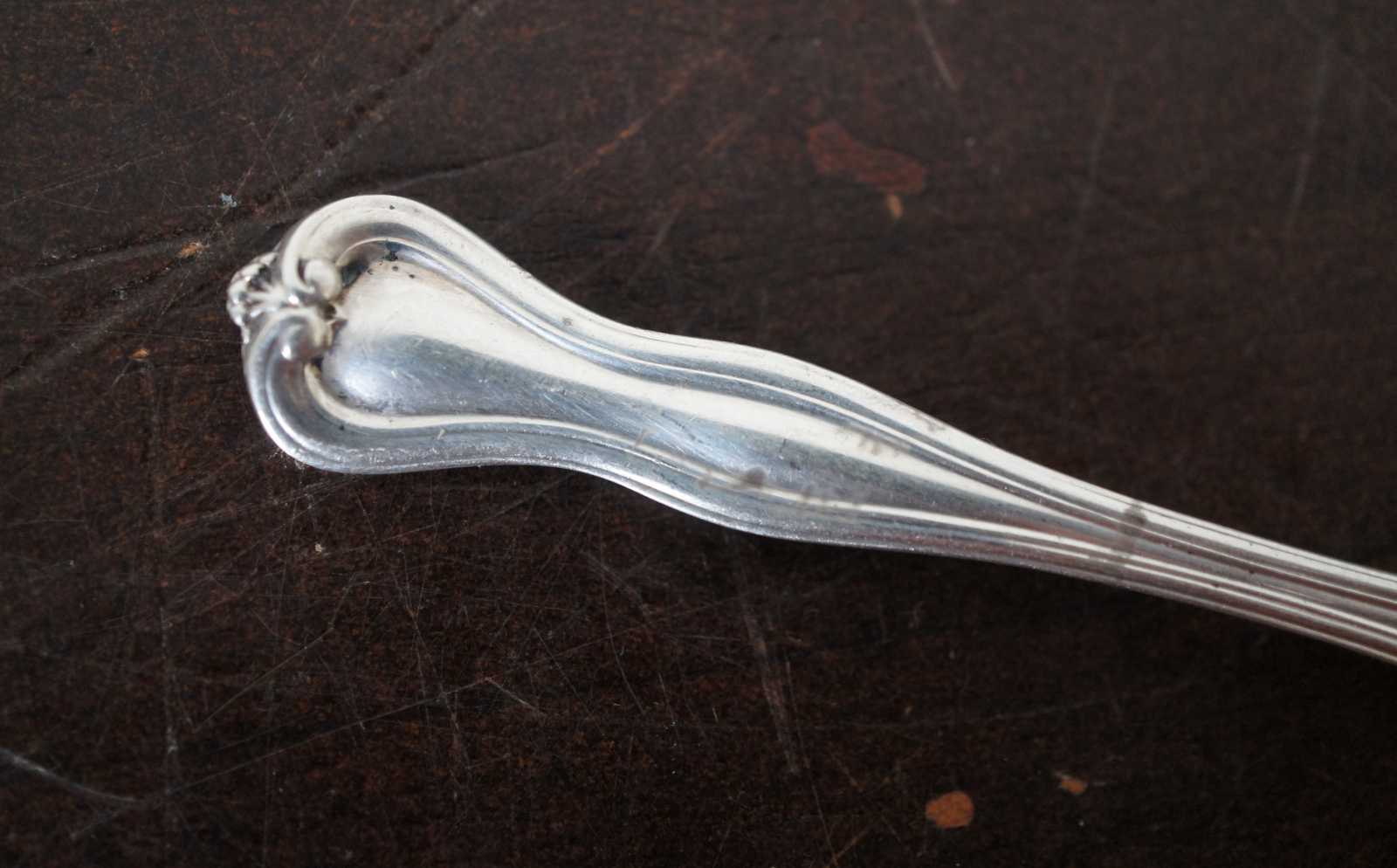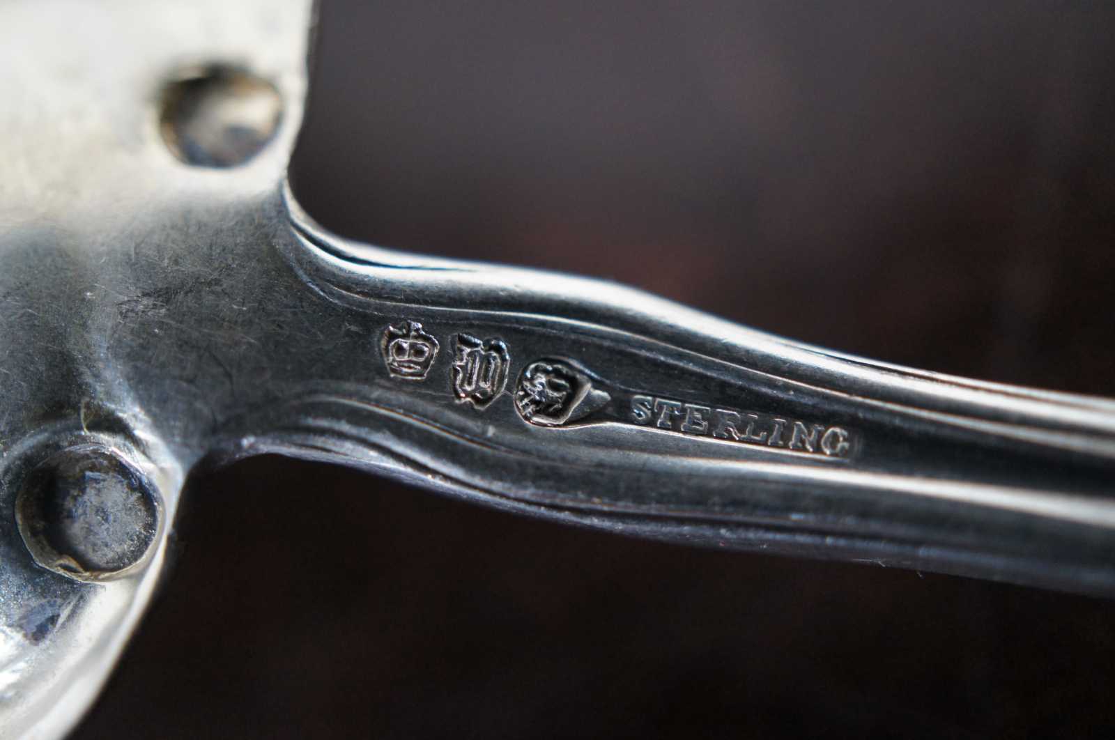 Antique early 20th century Watson sterling silver sugar spoon in the Mount Vernon pattern, engraved with a B. The origin of the firm traces back to 1874 when was formed in Attleboro, MA, the Cobb, Gould & Co. The founders were Clarence L. Watson, Fred Newell, Charles Cobb, Samuel Gould and W.A. Battey. The firm produced a line of jewelry goods, mainly gold plated. Between 1875 and 1880 Battey, Cobb and Gould withdrew from the partnership and Watson and Newell, the only ones left, formed a new firm operating under the name Watson & Newell (1880-1886). In 1887 Joseph R. Ripley joined to the business and the firm changed its name to Watson, Newell & Co. In 1891 also Edward L. Gowern entered the partnership. The business continued with success and, needing larger quarters, in 1894 the old Mechanics Mill property was bought opening the new factory in 1896. The name changed to Watson & Newell Co, while Mechanics Sterling Company was the name of the subsidiary flatware branch. In 1899 the firm obtained its first flatware patent (Clarence L. Watson) and began a wide production of flatware and souvenir spoons. Failing health forced Fred Newell to retire from the active participation to the firm shortly after the turn of the century. He remained as a non-active partner until his death (1910). In 1904 the sleeve and collar buttons division became a separate operating unit with the name of Standard Button Company under the direction of Ripley and Gowen. In this period the firm produced hundreds of sterling souvenir spoons depicting a variety of subjects. Beginning about 1900, Watson produced a line of sterling hollow-ware for Wilcox & Wagoner of New York using the "sword and laurel wreath" mark. Wilcox & Wagoner closed down c.1905 and Watson continued producing with this mark until 1929. In 1920 "The Watson Co" was incorporated taking in charge all the silver operations. Many new flatware patterns continued to be introduced on a regular basis. At the death of Clarence L. Watson (1930) the management of the firm was assumed by his son-in-law Grover Richards. In 1955 the business was sold to R. Wallace & Sons. The dies of Watson souvenir spoons (as many as 3000), sold by Wallace, in the 1970s were in unused possession of The Inman Co Inc. of Attleboro, MA.