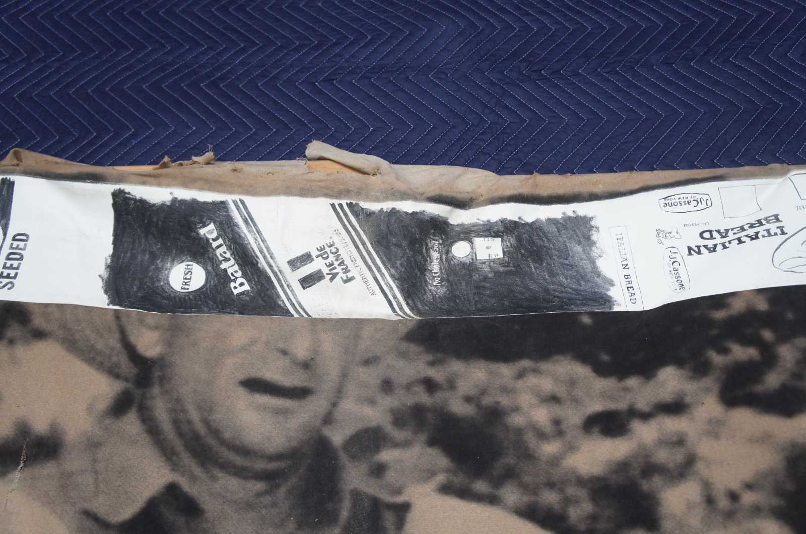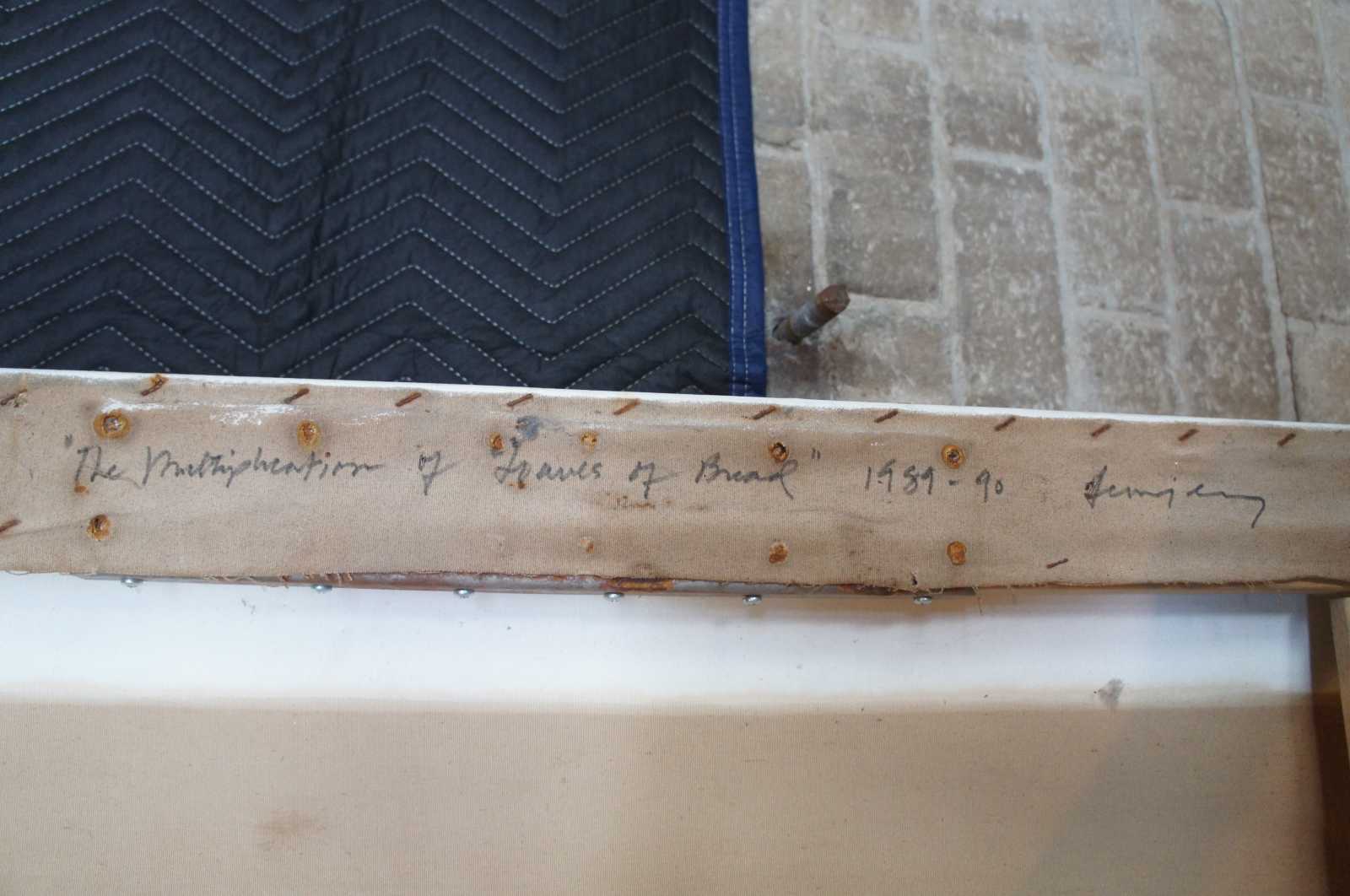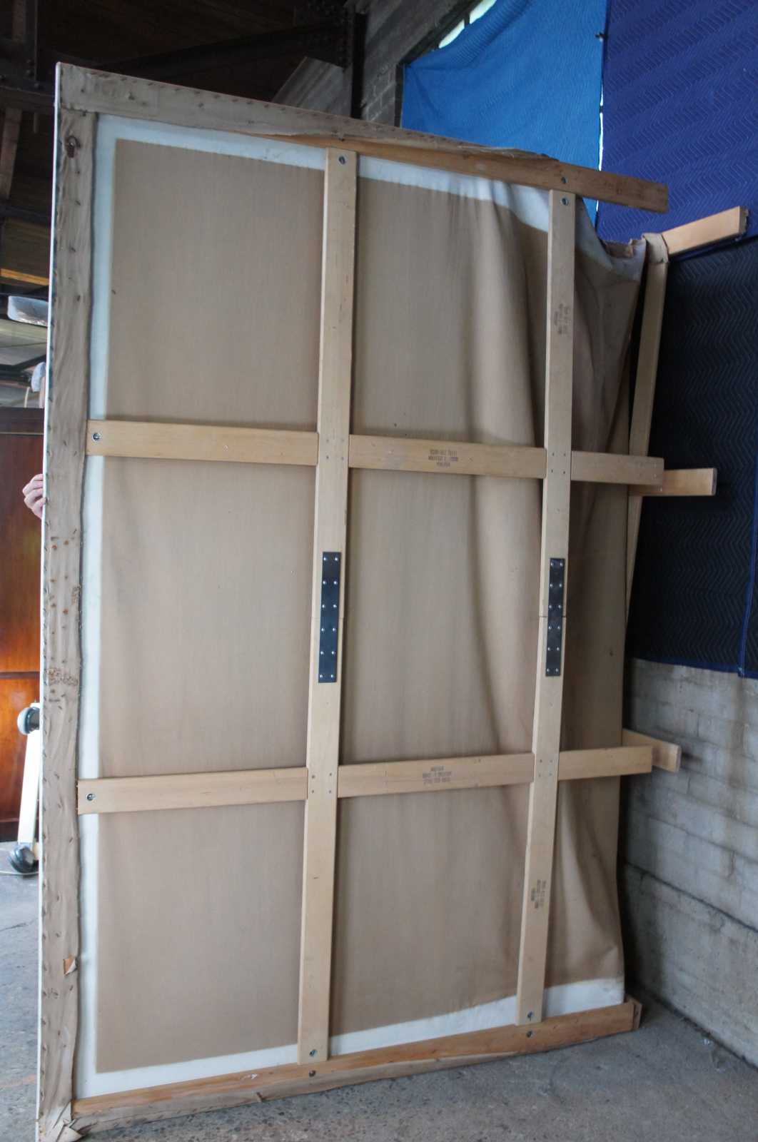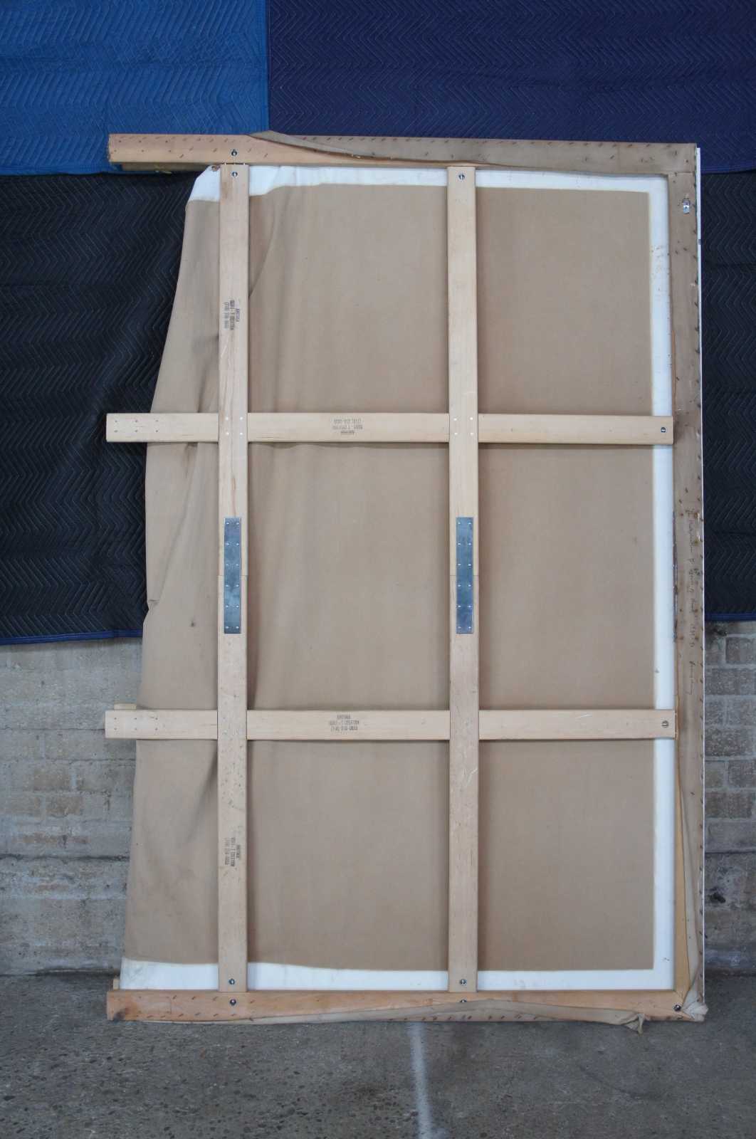 Fair condition, some distressing and wear to canvas, needs restretched along the top and bottom center, see pictures.