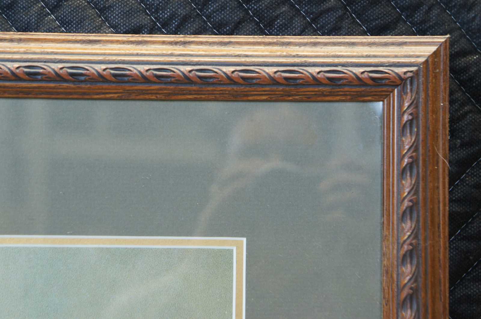 Framed lithograph print by Clarence F. Underwood showing a Victorian couple seated at a table. “Clarence Underwood (New York, 1871 - 1929) Born in Jamestown, New York, Underwood studied at the Art Students League and the Academy of Julian in Paris in 1896 with J. P. Laurens, Constant and Bouguereau.