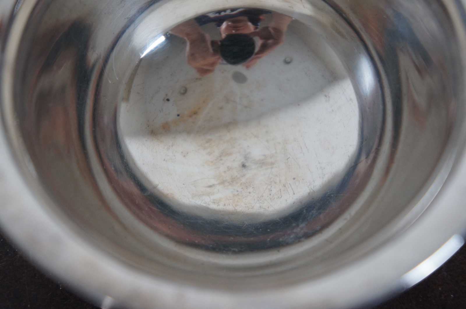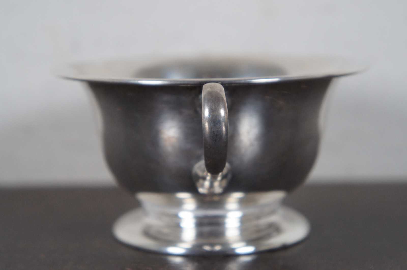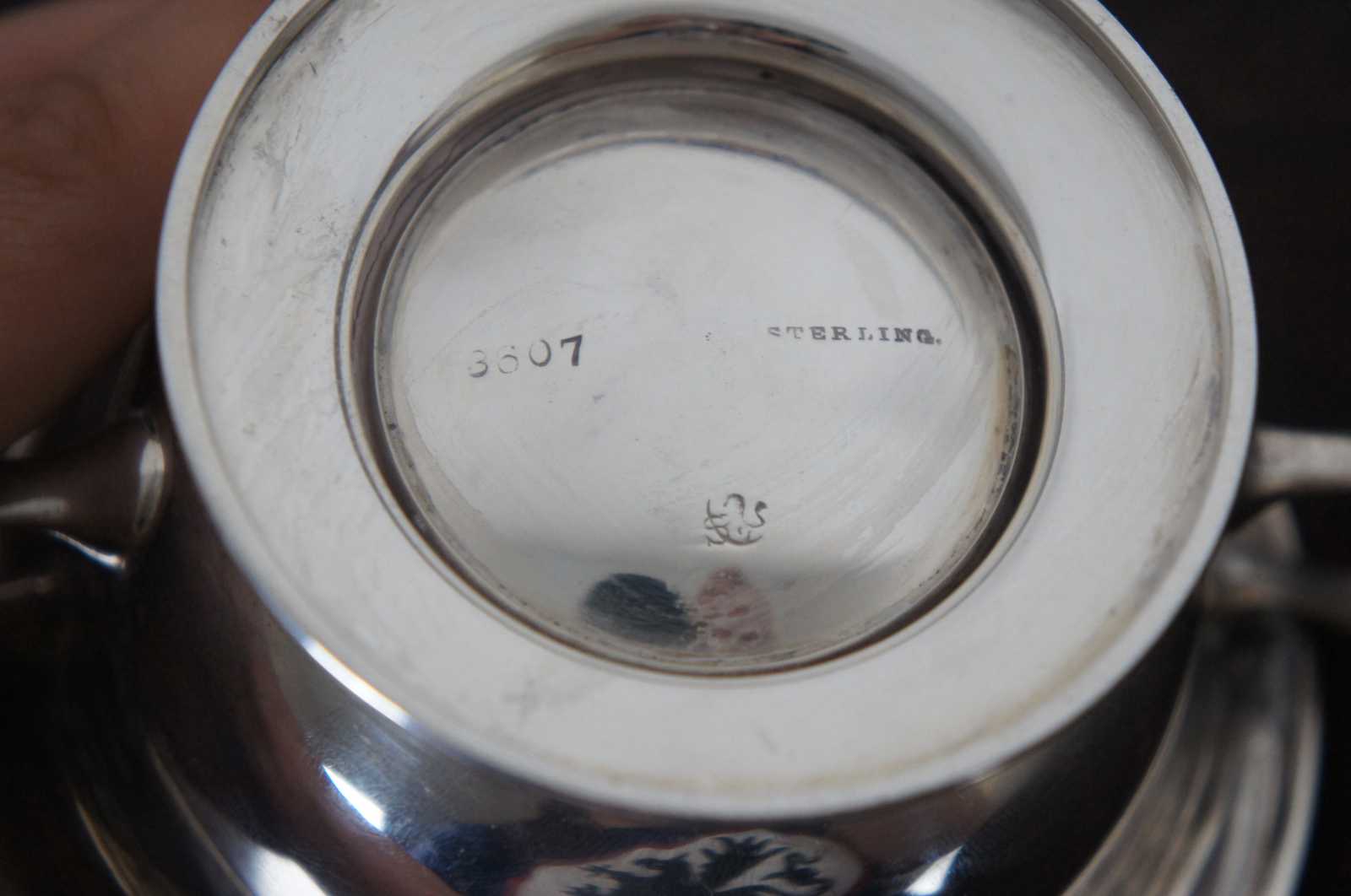 Vintage sterling silver sugar compote or bouillon bowl numbered 3607 and marked with the symbol of a lion propped against the letter S.