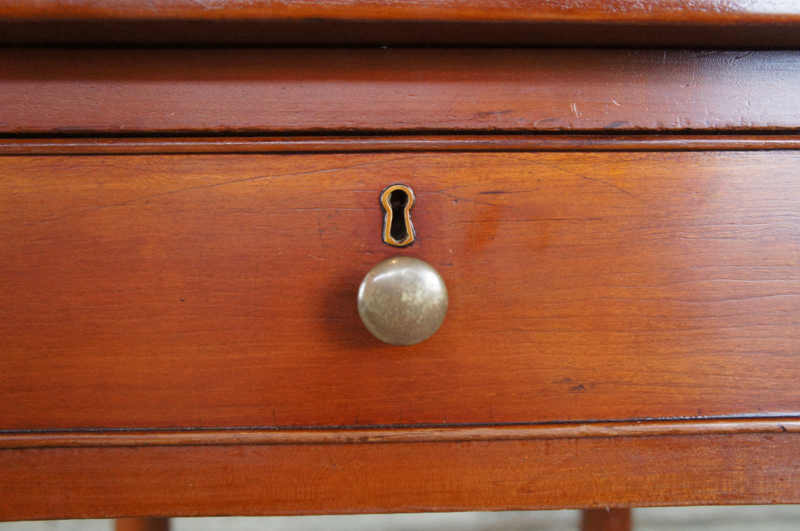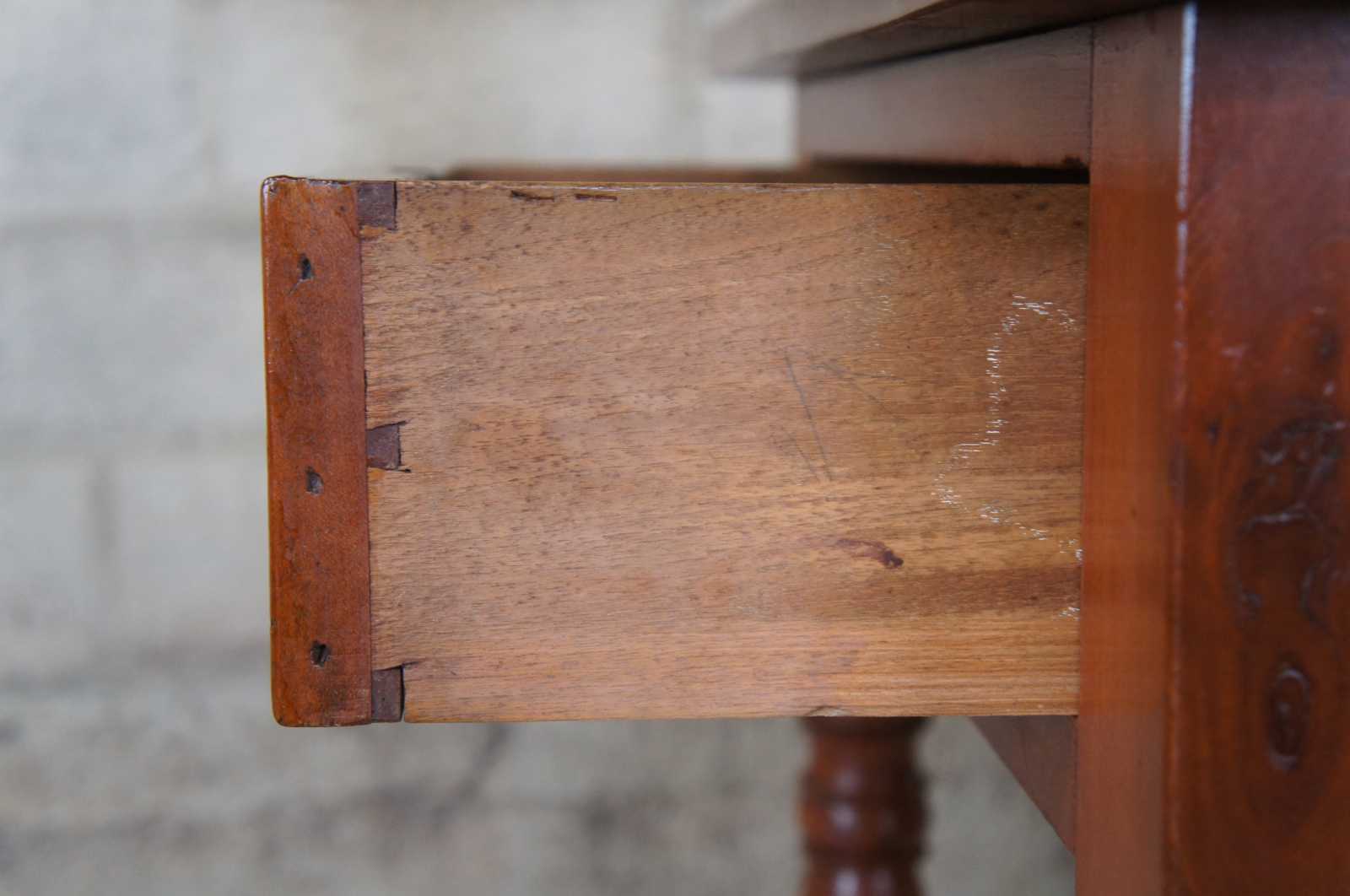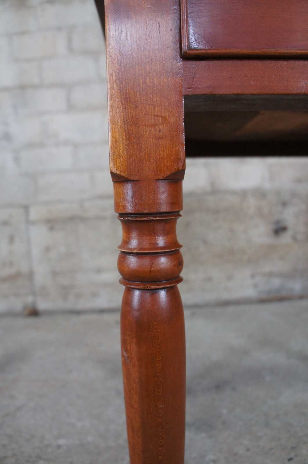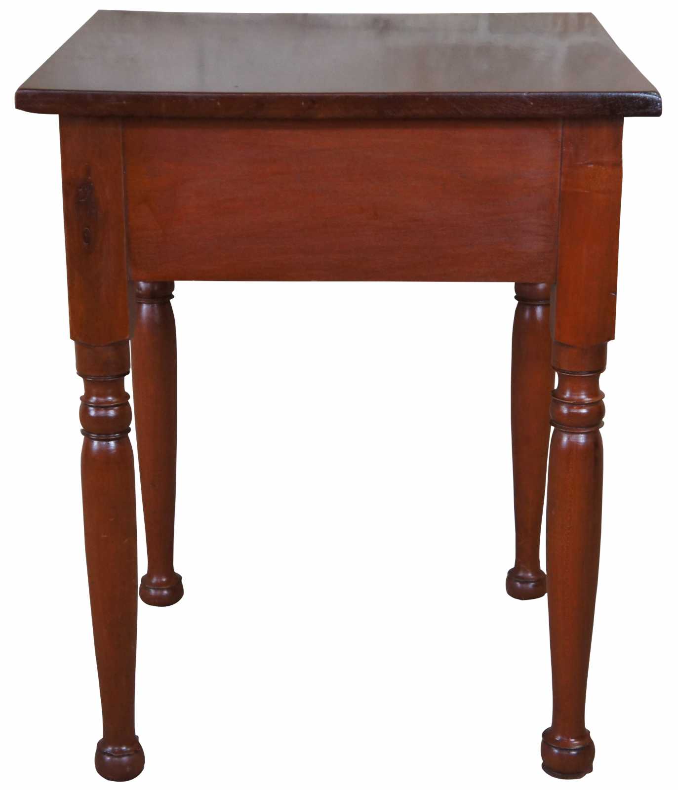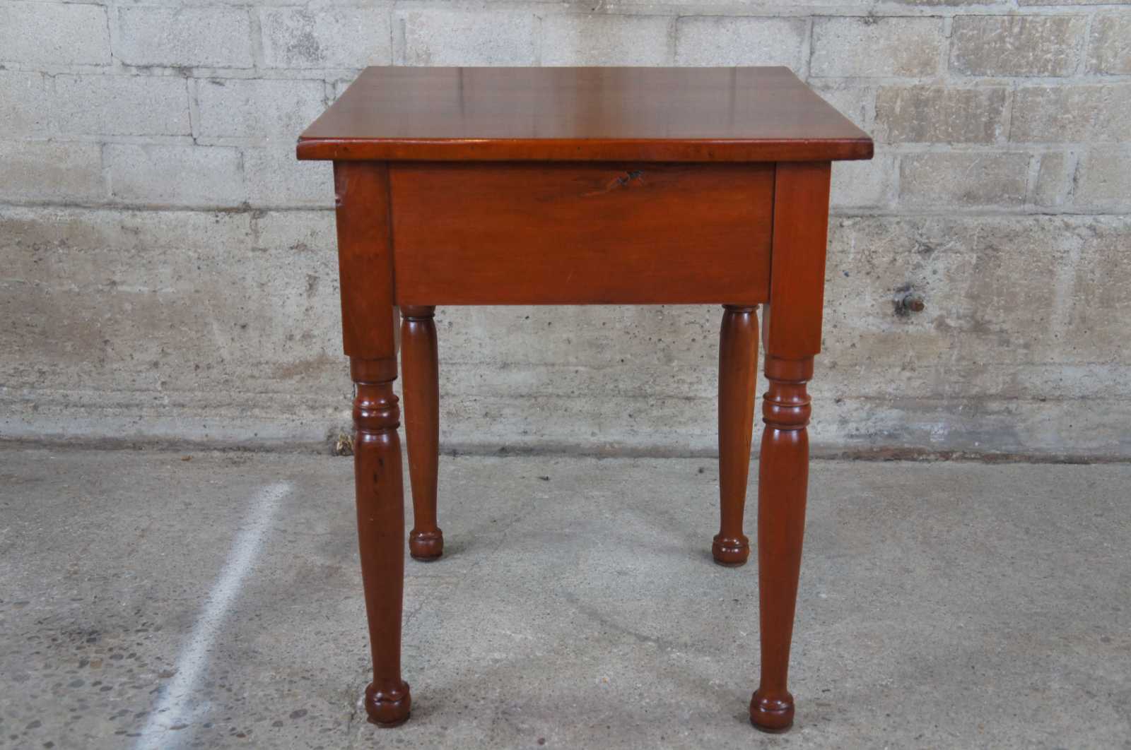 Antique American side or accent table. Made of cherry featuring square form, one upper drawer and turned legs.