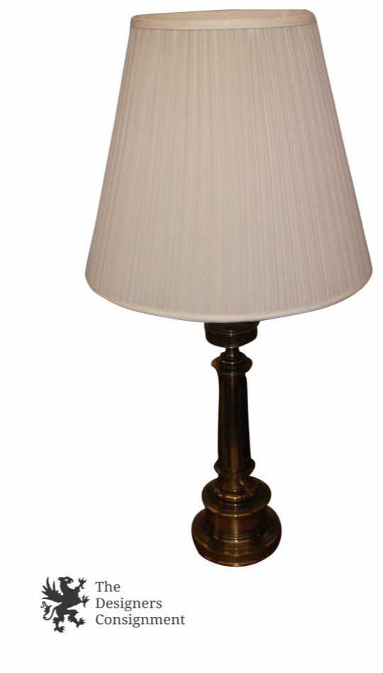 This is a wonderful Table lamp by Stiffel. With its stacked column base and brass finish it demands attention in any room. The shade is by Roseart out of New York
