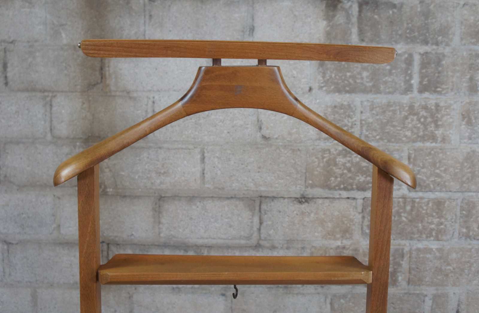 Vintage clothing rack or butlers settee. Made of oak featuring storage for suit / coat, pants, hat, belt, tie and a tray for change / keys ect.