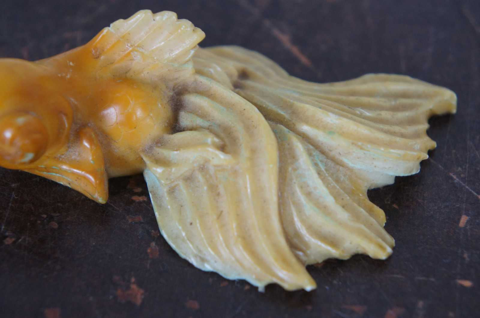 Vintage carved orange and white soapstone koi fish figurine or desktop paperweight.