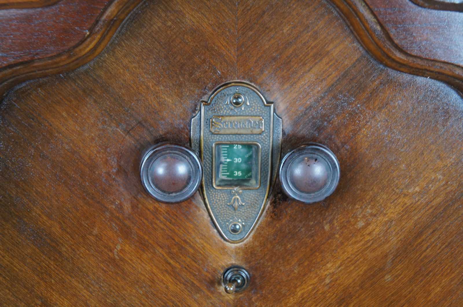 Antique Serenader Lo-boy console tube radio. Made of walnut featuring late art deco styling.