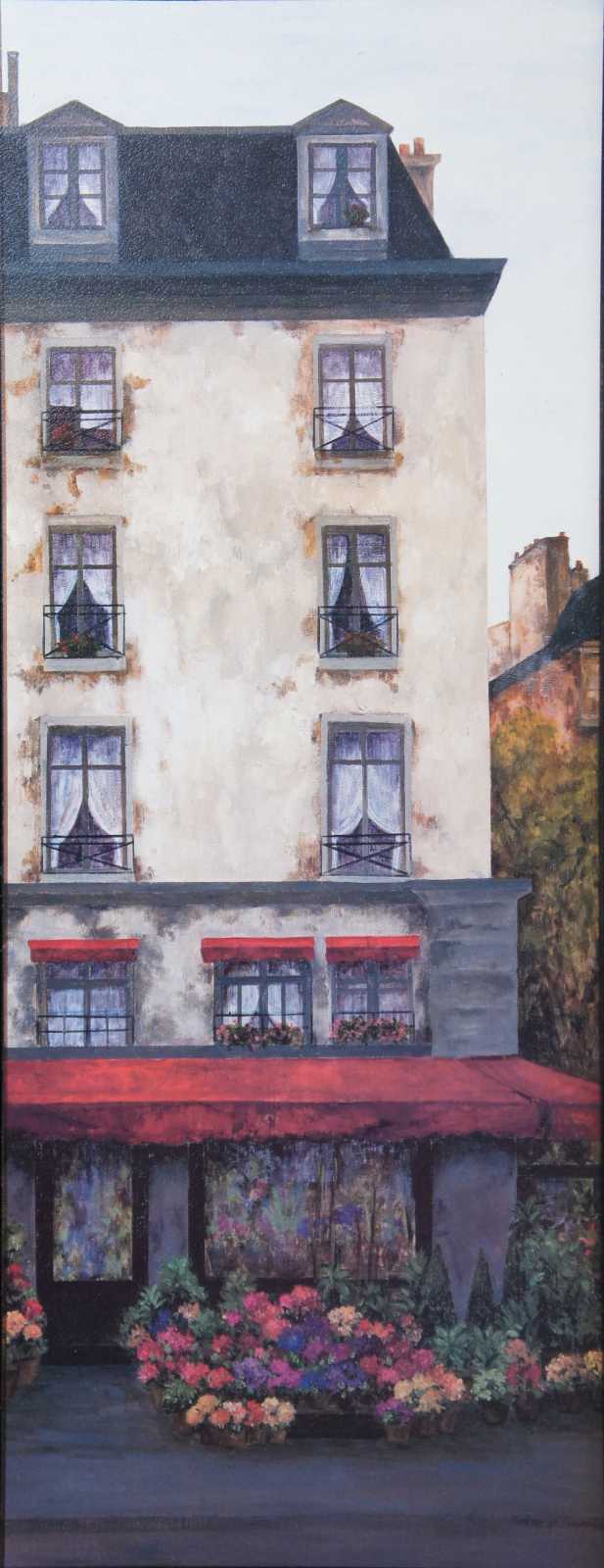“Flowers on the Boulevard II” and “Flowers on the Boulevard III” by Montserrat Masdeu, framed and sold by Bassett Fine Art (a division of Basset Mirror Company).