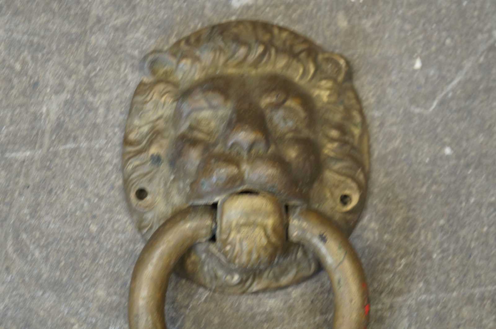 Vintage Victorian revival bronze lion head door knocker hardware.