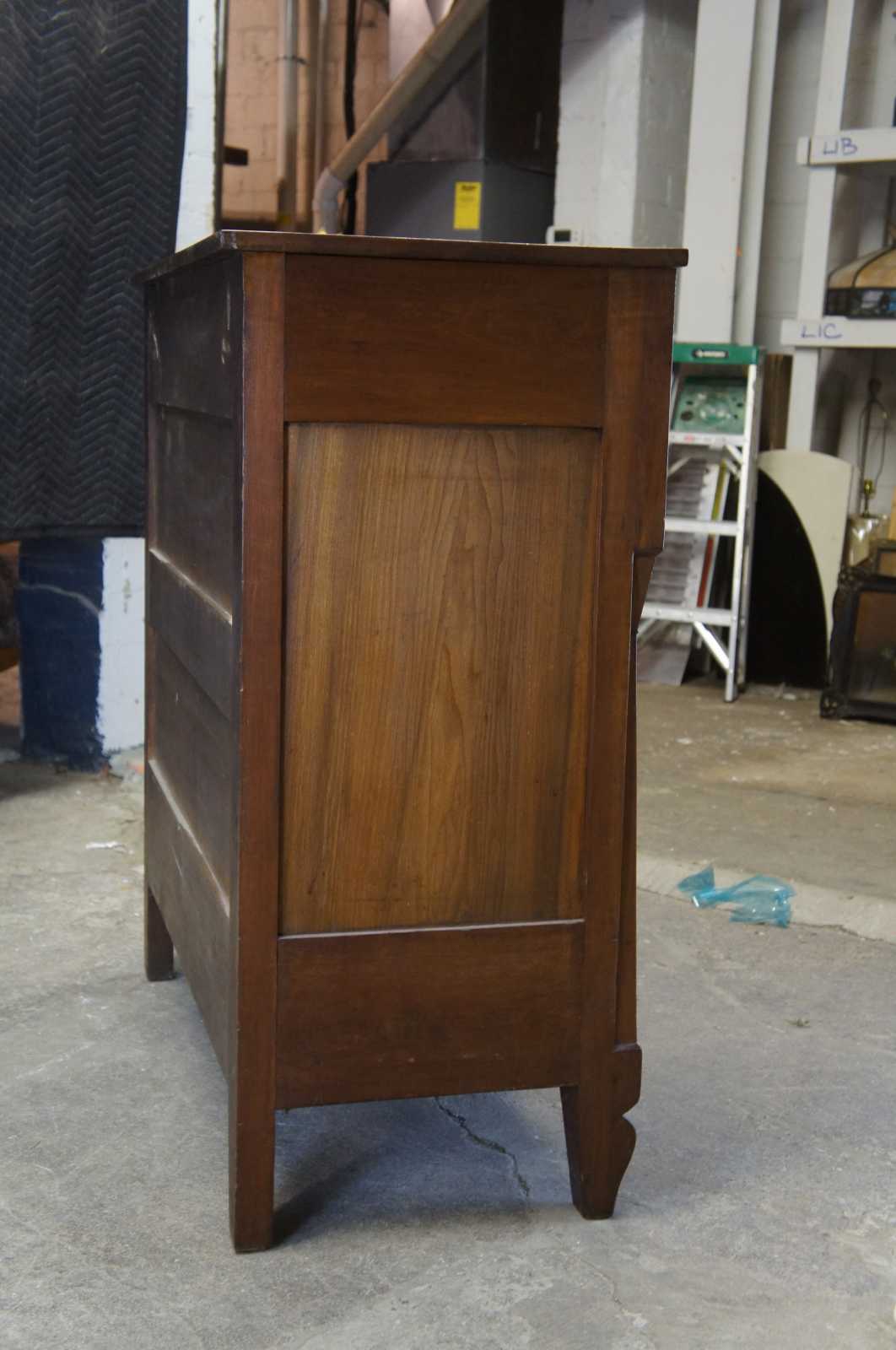 American Empire Tall Chest, circa 1850s. Features a rectangular form with a pronounced top. Includes beveled drawer fronts, hand dovetailing and square tapered columns along the front. Made from walnut