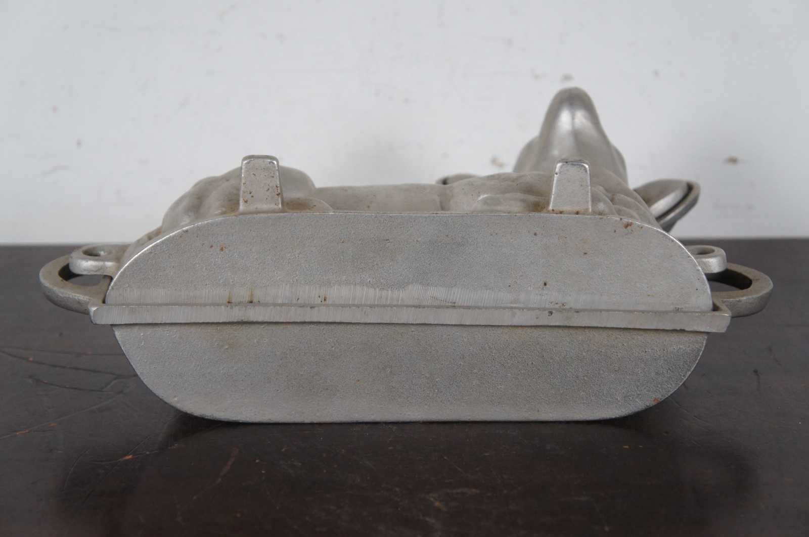Vintage two piece cast aluminum lamb or sheep shaped cake pan or chocolate mold.