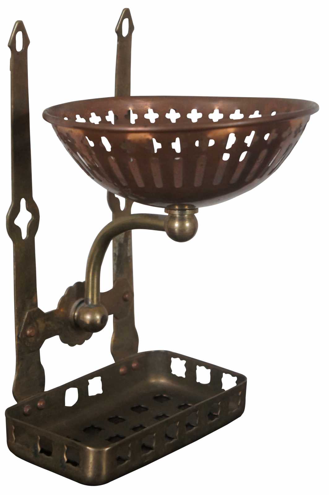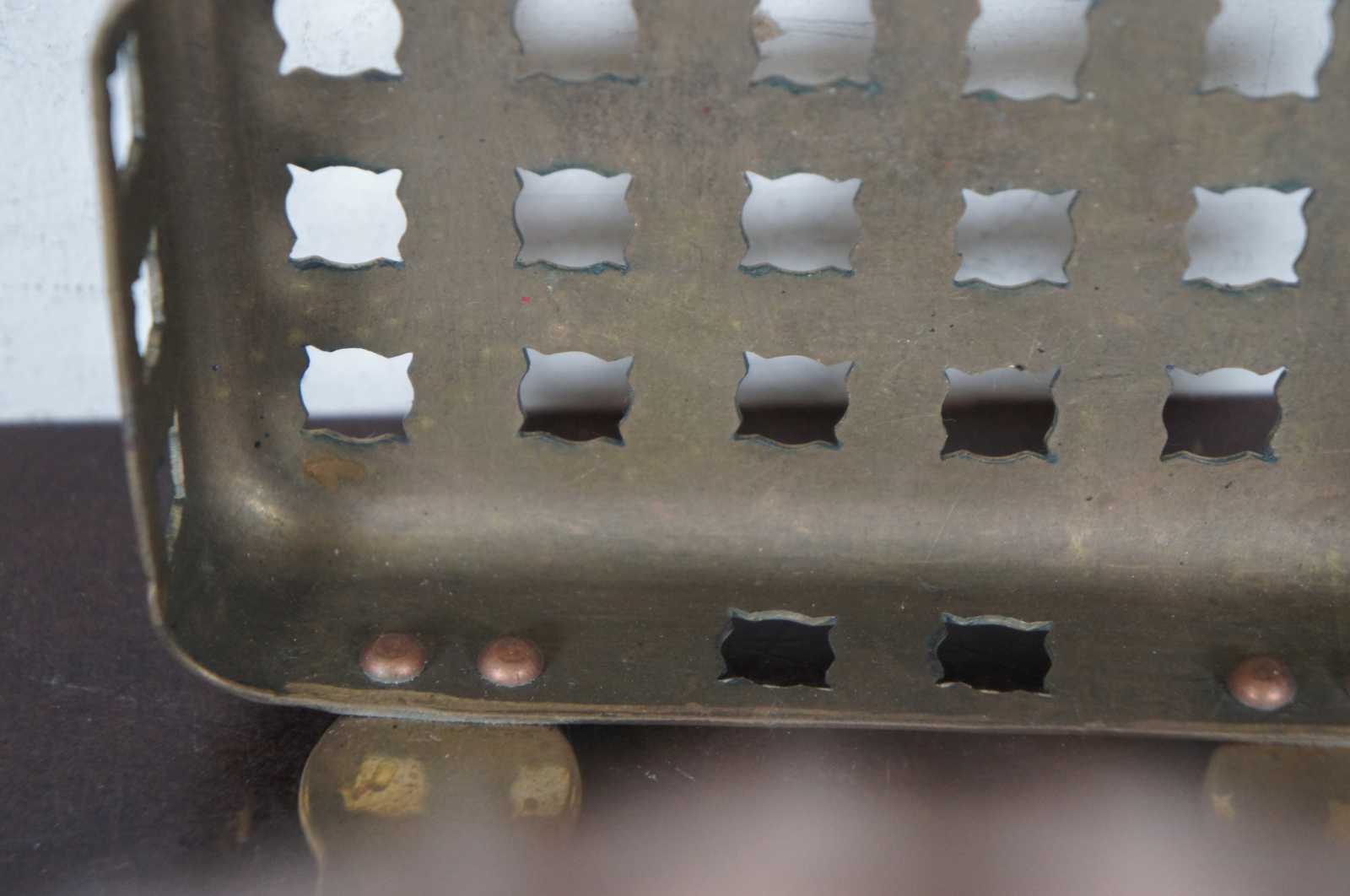 Antique Victorian wall mounted pierced copper and brass soap and sponge holder. circa 1900s