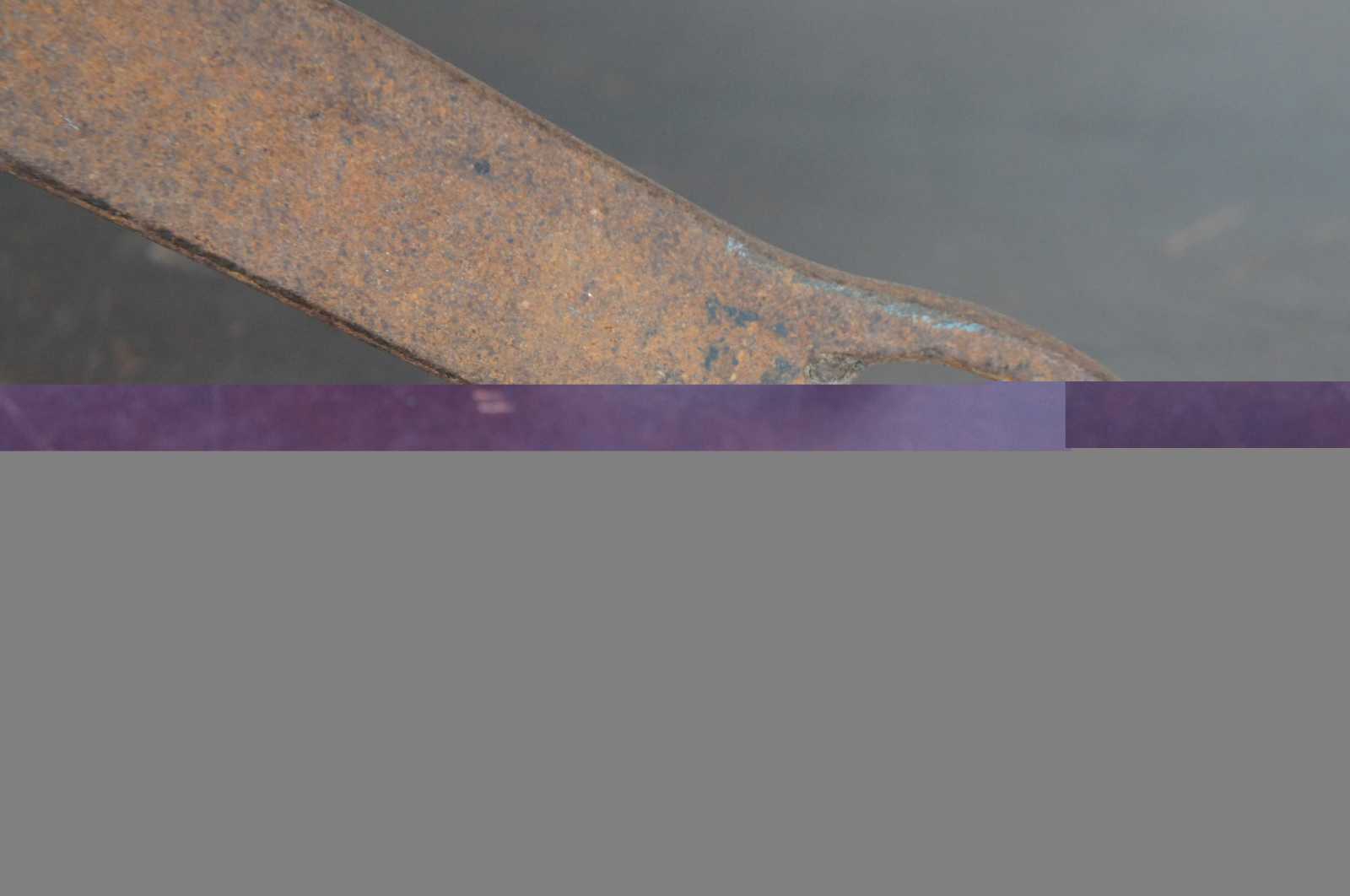 Good Overall - Marks/tarnish/oxidation, hairline crack on backside of handle; see pictures