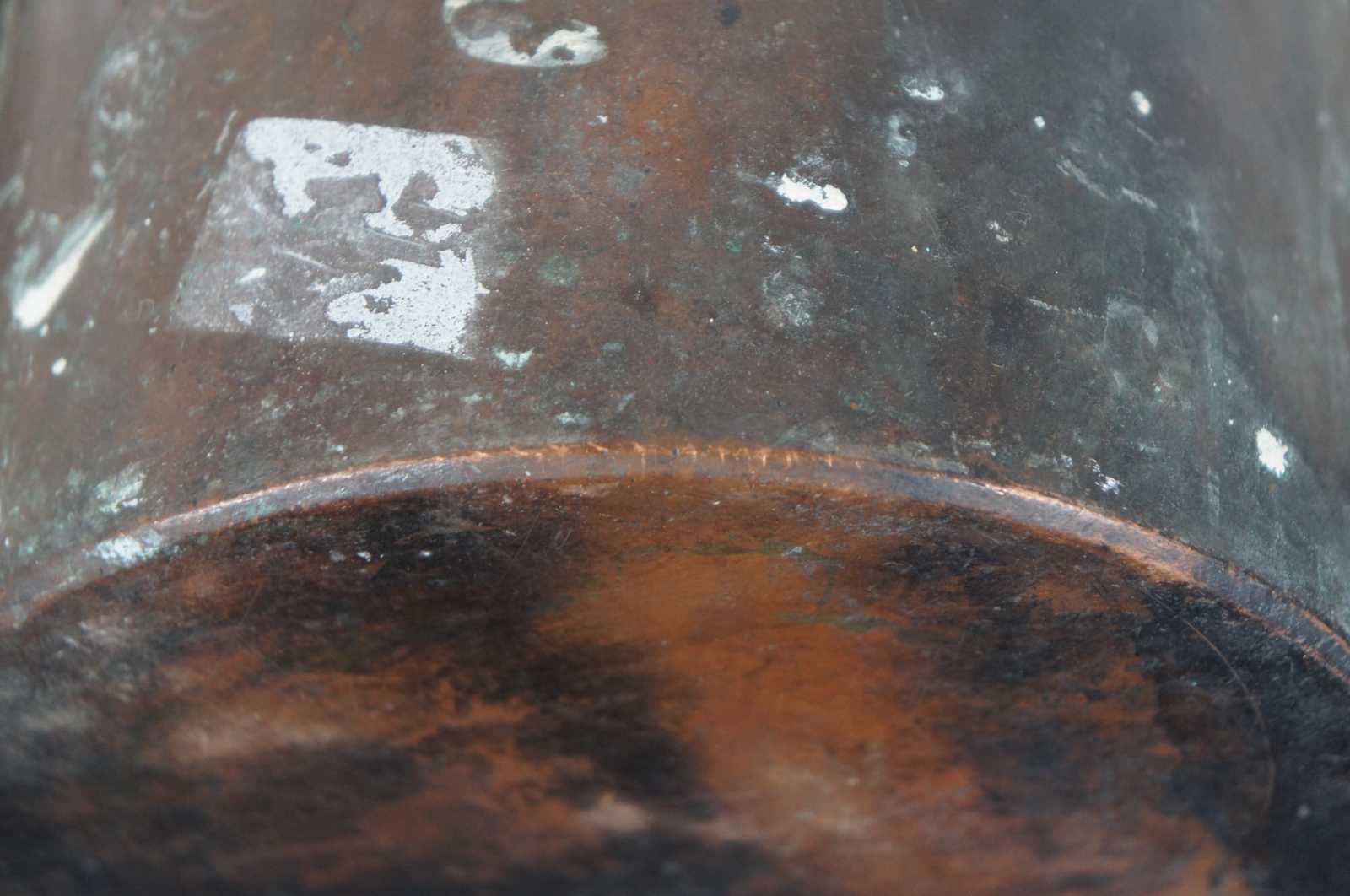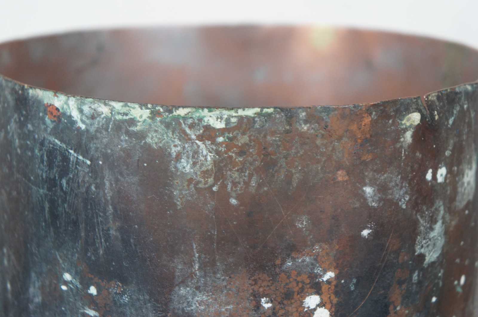 Good Overall - Rim slightly dented/small split; marks/heavy tarnish/oxidation/crusted white residue; see pictures