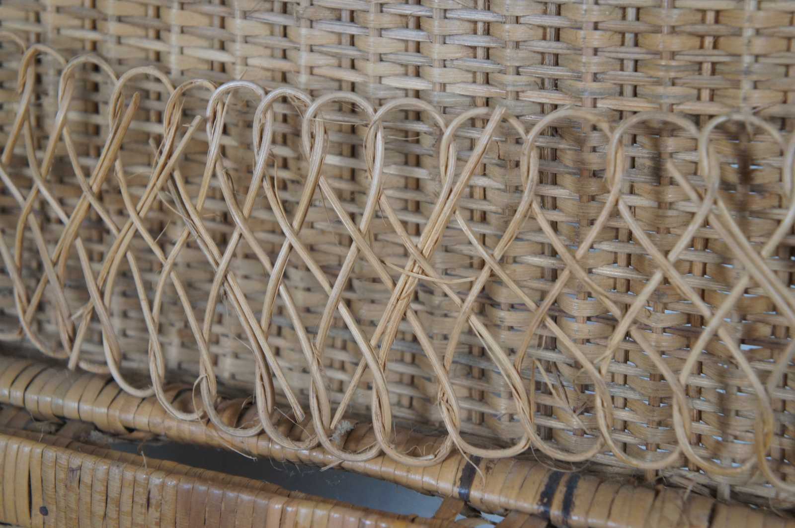 Vintage woven wicker suitcase or picnic basket with peg and loop closure.