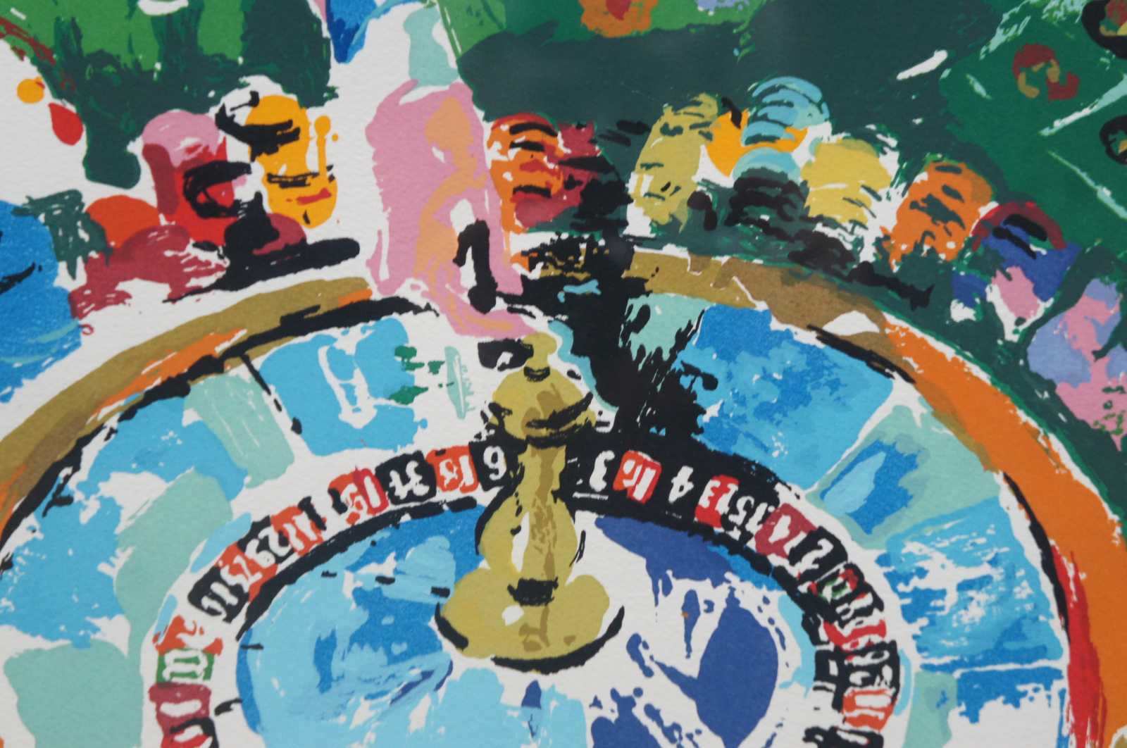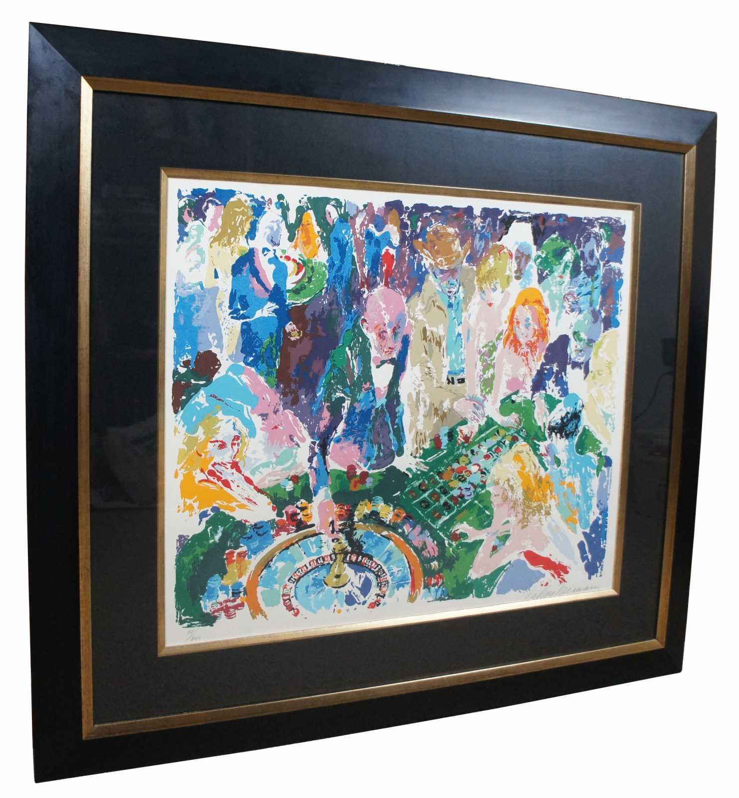 Vintage 1972 serigraph print “casino,” pencil signed and numbered 95/300 by LeRoy Neiman, showing a roulette table in a crowded casino. “LeRoy Neiman (1921-2012)