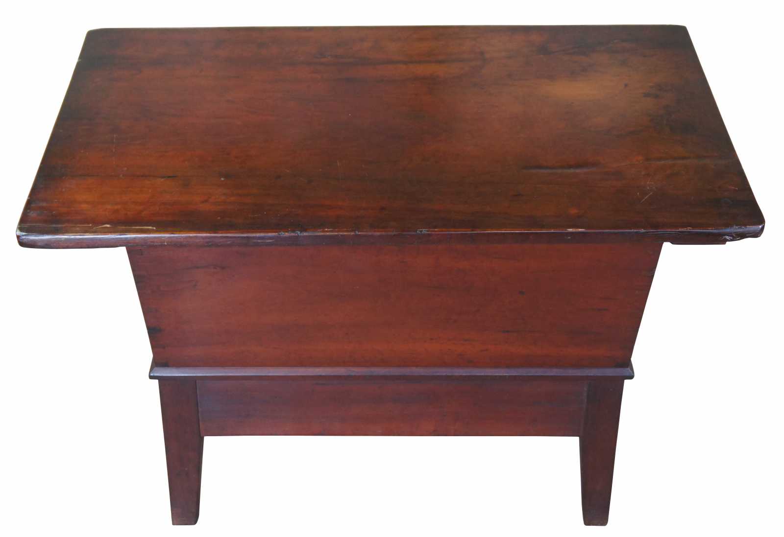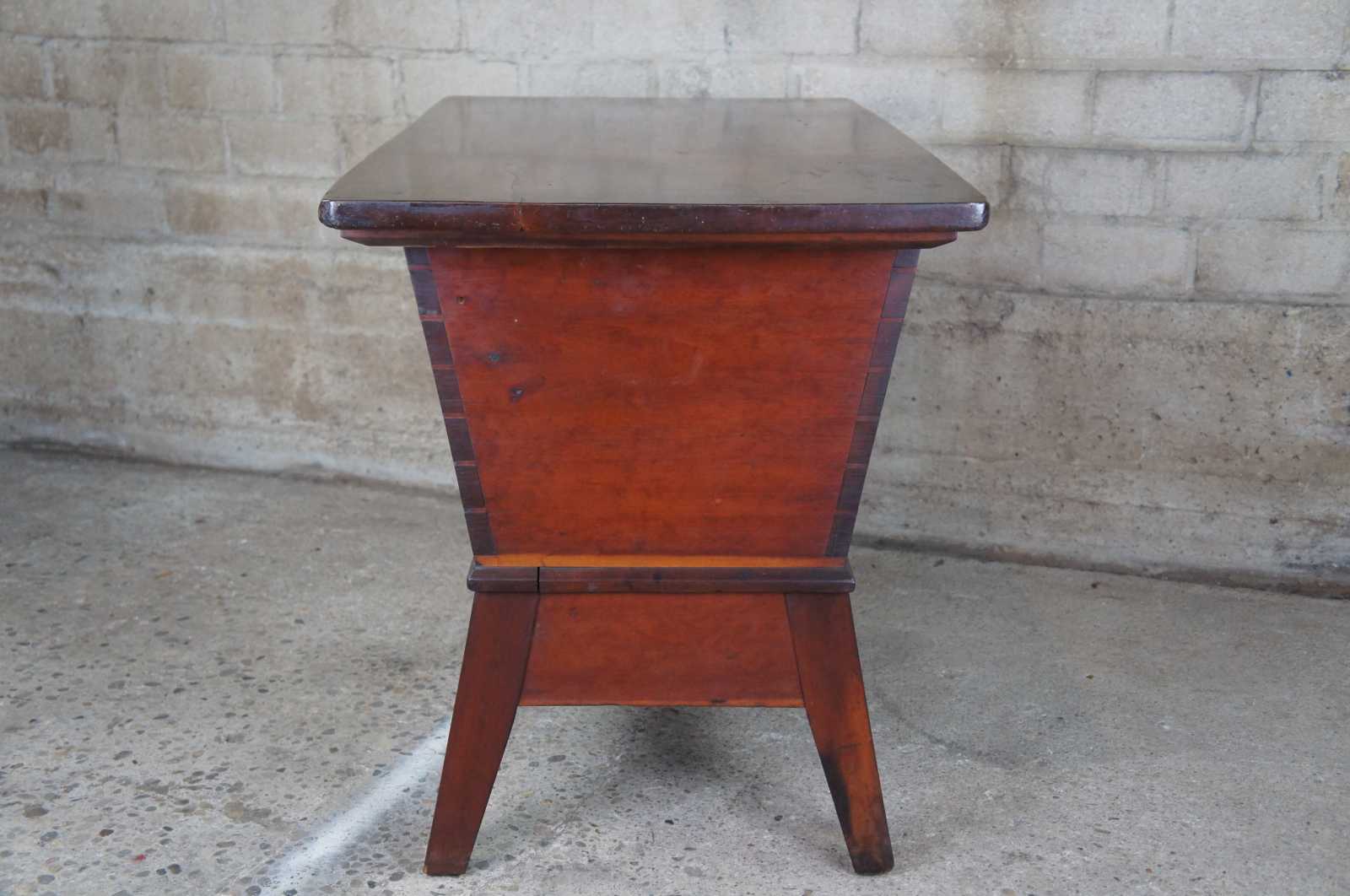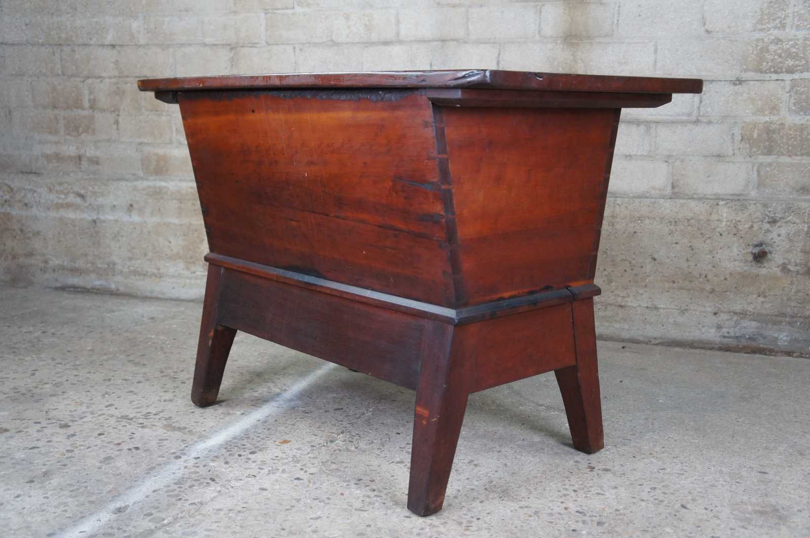 An Amish made early 19th Century pine dough box from Lancaster, Pa. Traditional styling with hand dovetailed joinery and incredible patina from centuries of use.