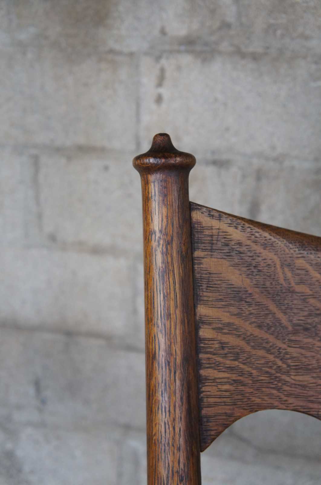 Early 1900s Hubbard, Eldredge & Miller office or desk chair. Made from quartersawn oak featuring a ladder back design with an engraved slat, finials and flared arms. The chair sits upon an adjustable base with tilt function. Hubbard, Eldredge & Miller operated out of of Rochester, NY. Founded by W. A Hubbard Jr & L.D. Eldredge as Hubbard & Eldredge Co. Later incorportaed to Hubbard, Eldredge & Miller with the Addition of Fred S. Miller.