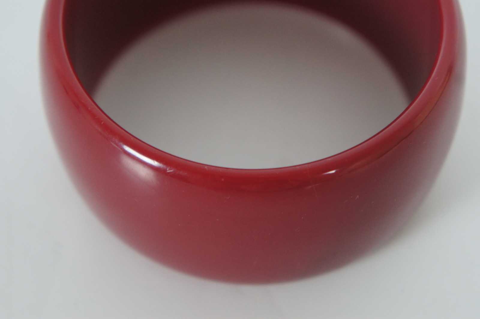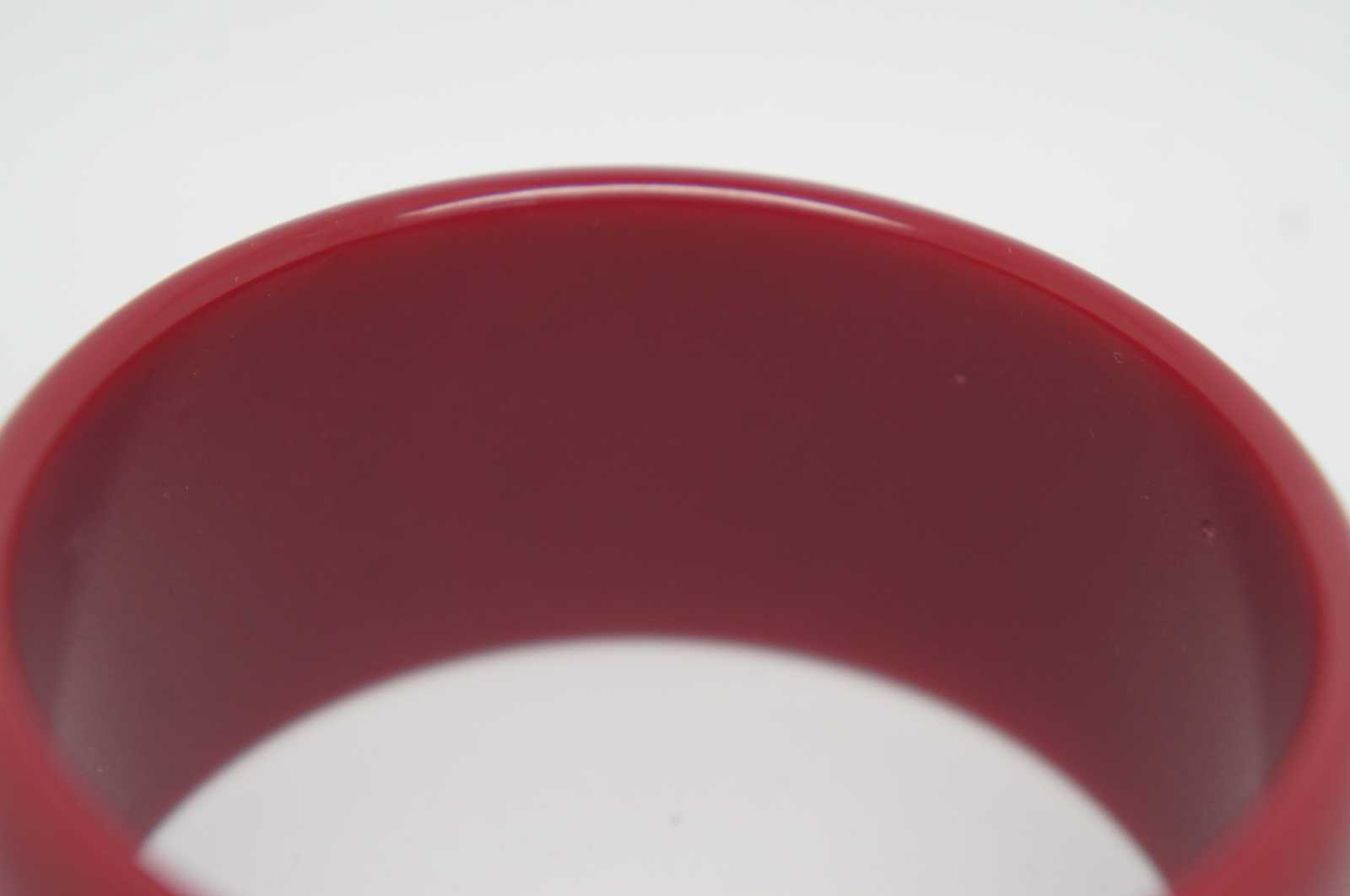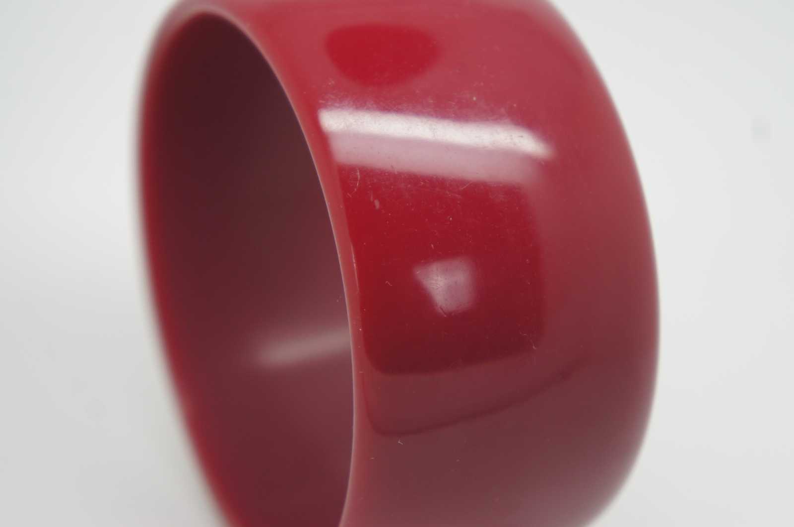 Early to mid 20th century Bakelite wide, oversized bangle bracelet in pinkish red.