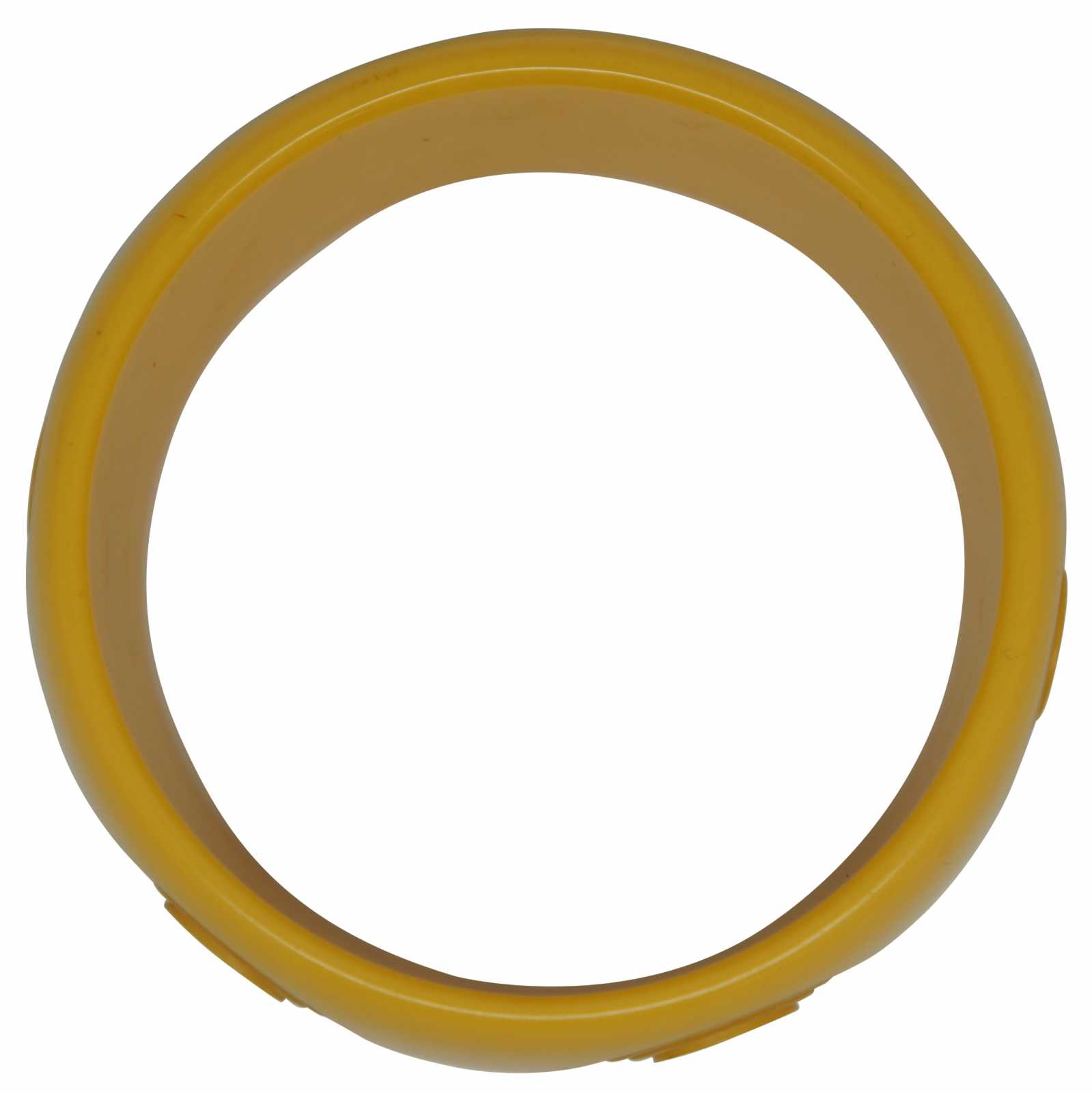 Early to mid 20th century wide yellow Bakelite bangle bracelet with carved circles.