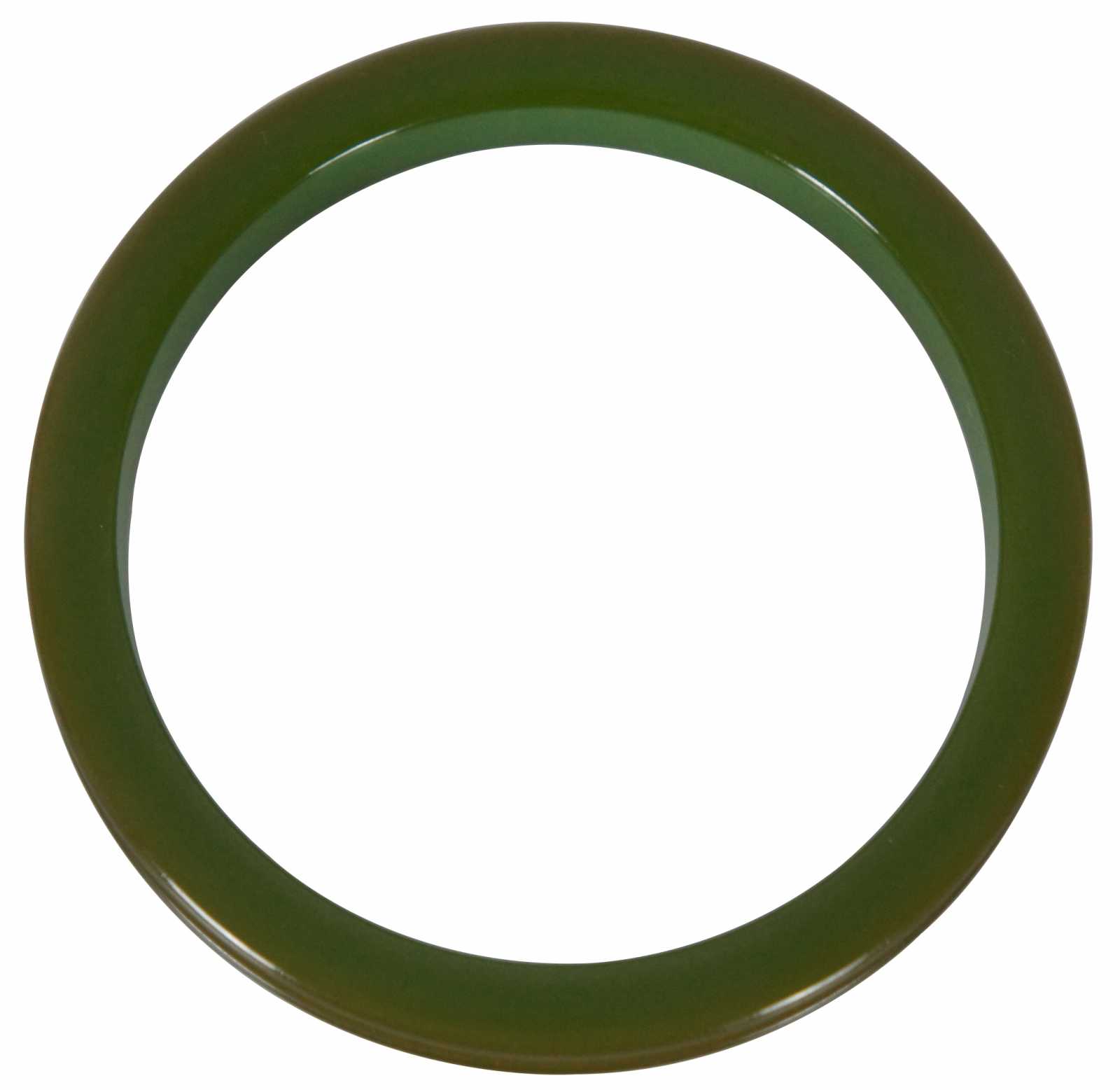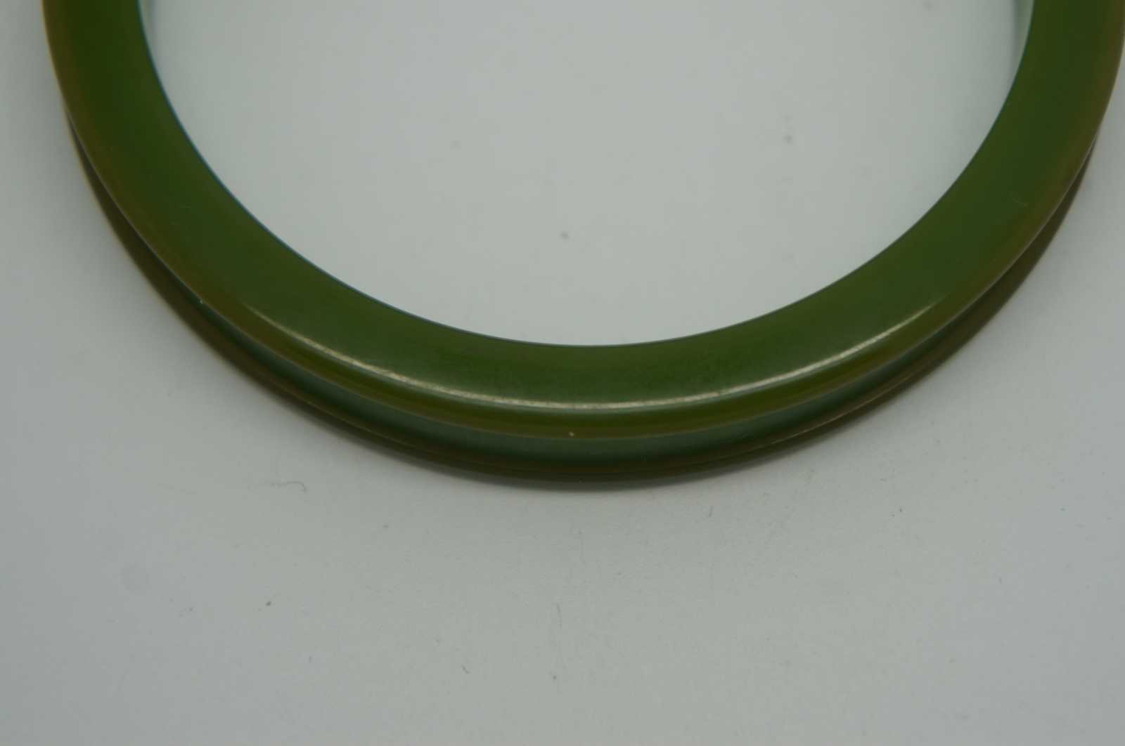 Early to mid 20th century olive green Bakelite bangle bracelet with raised edge.