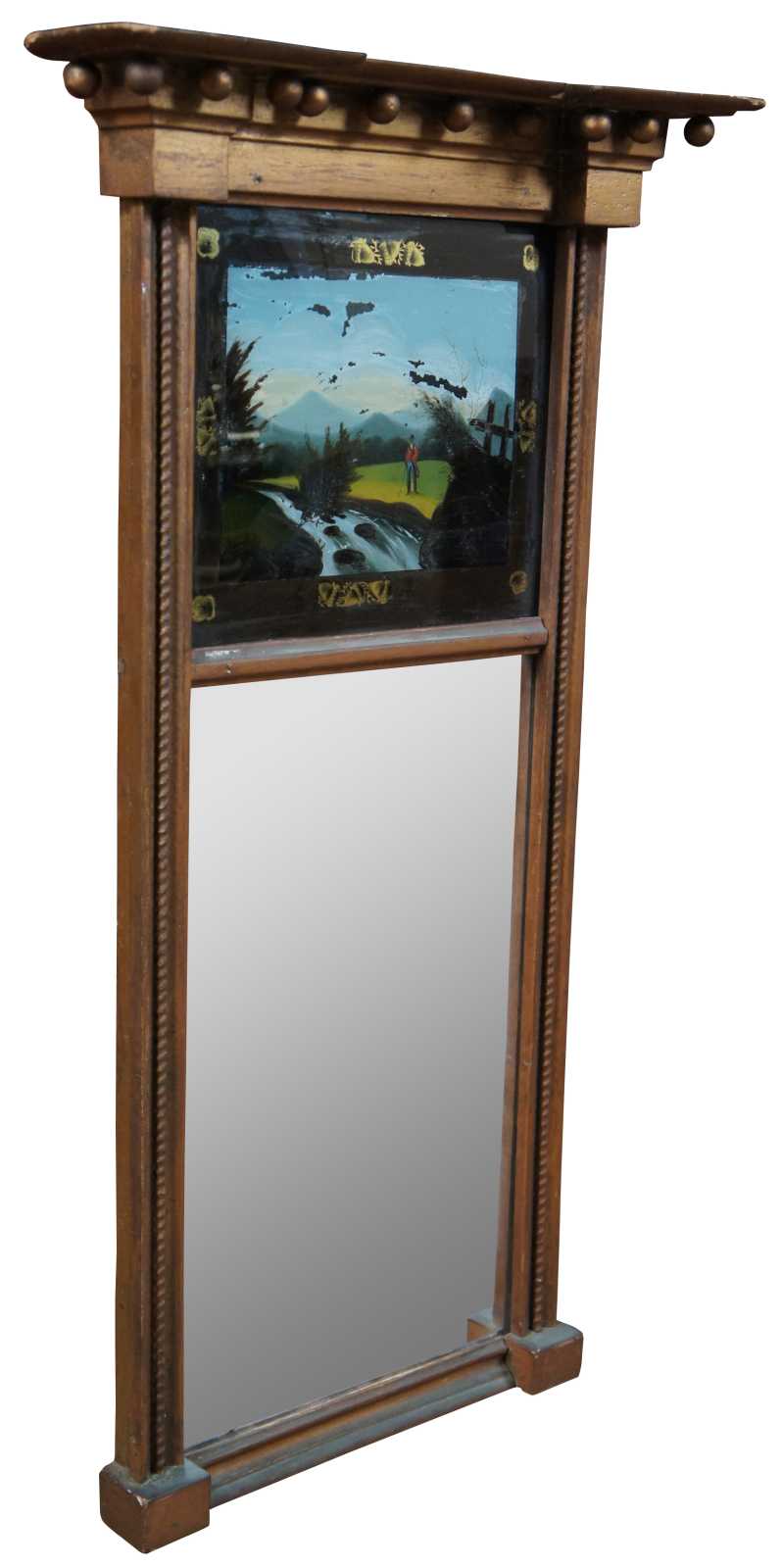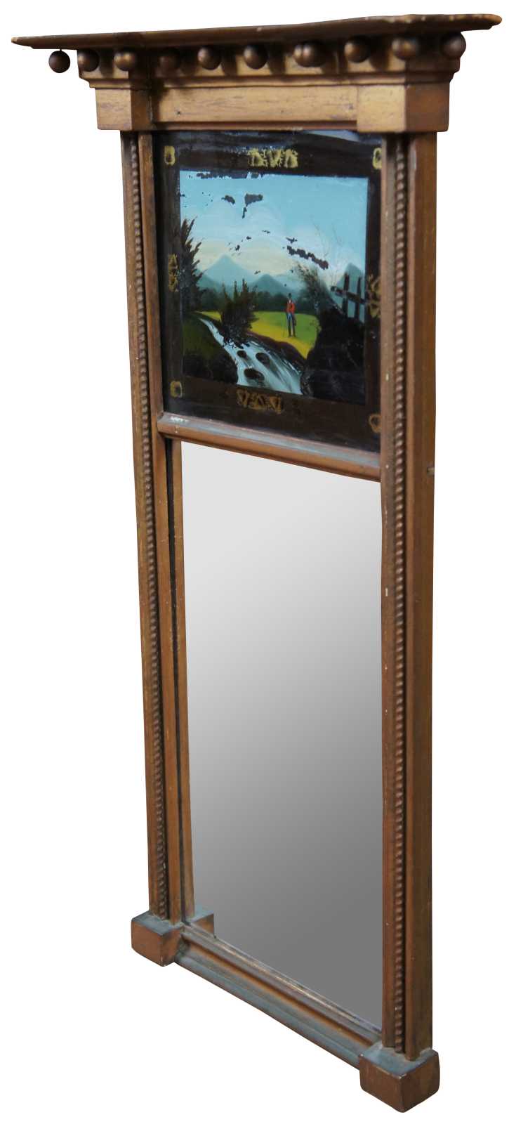 Antique Federal Giltwood Trumeau Pier Mirror Eglomise Reverse Painted Regency