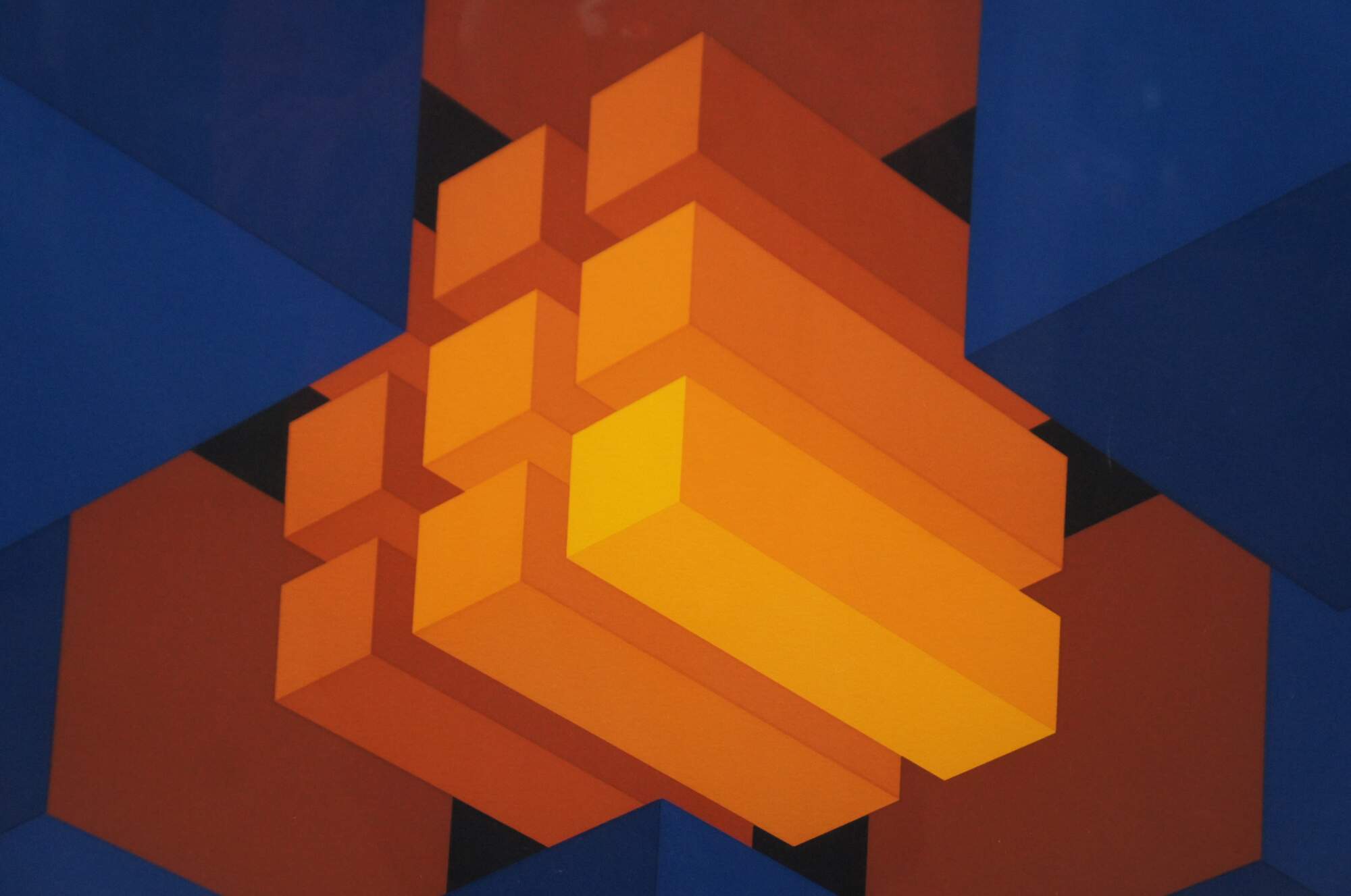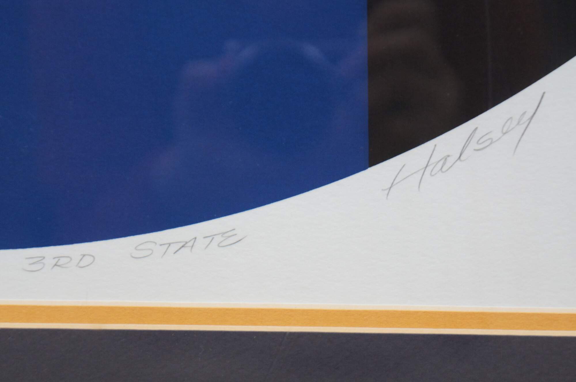 At the height of his career (late 1970s), Halsey was creating serigraphs and acrylic paintings that according to him were his endeavor to “visualize an ideal”. The pieces represent the Trinity and often involve “emanating light in ordered structures, suspended in deep space,” an attempt to point to cosmic order through mathematics. Unlike many artists, Halsey was totally involved with the print making process from mixing his own inks, to cutting all stencils and often physically printing many of his own editions.