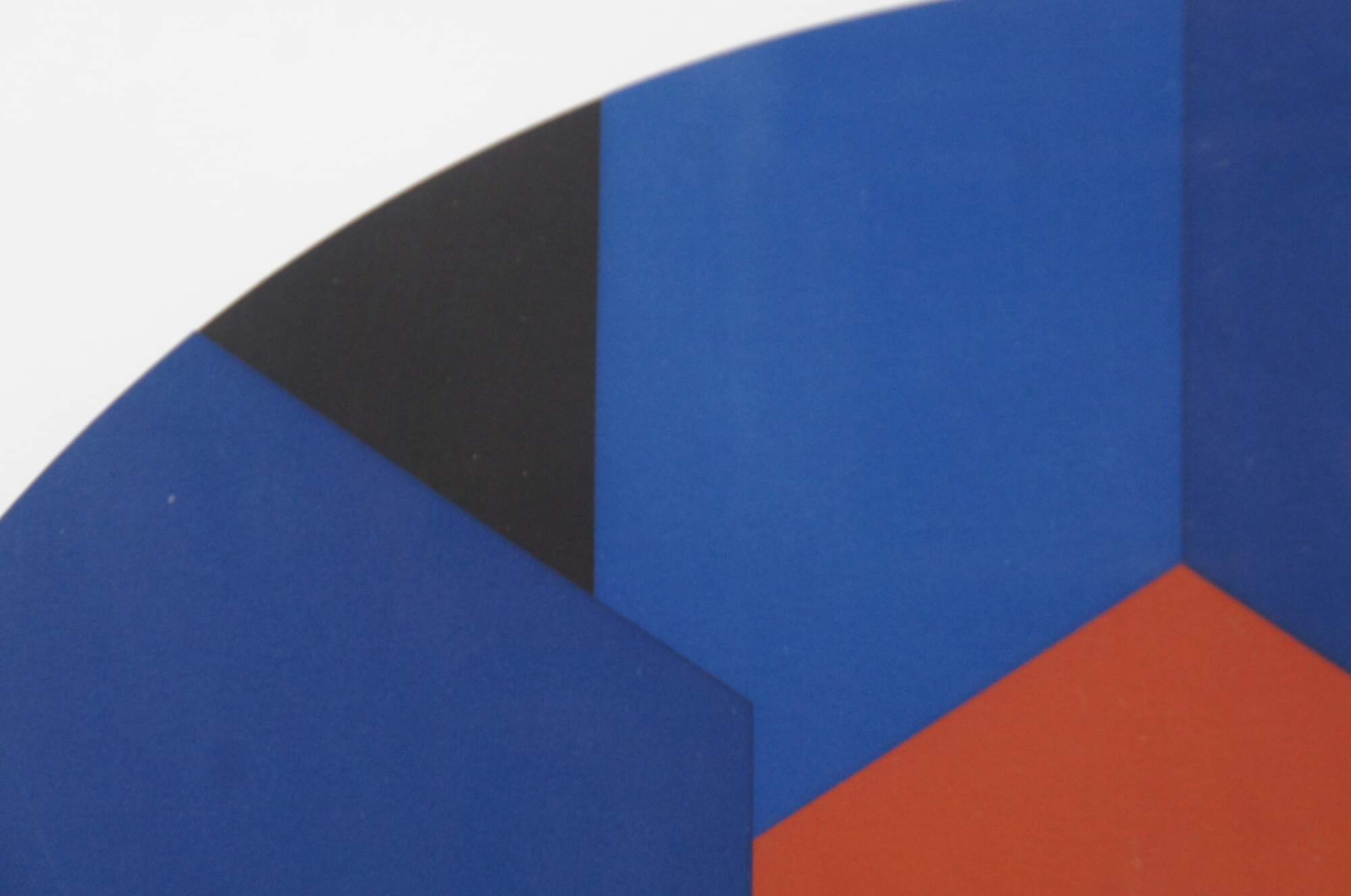 Vintage 1979 original orange and blue circular geometric supergraphic op art serigraph print by Brian Halsey titled “Novatron 3rd State” from the Mandalas suite of works, pencil signed by the artist.