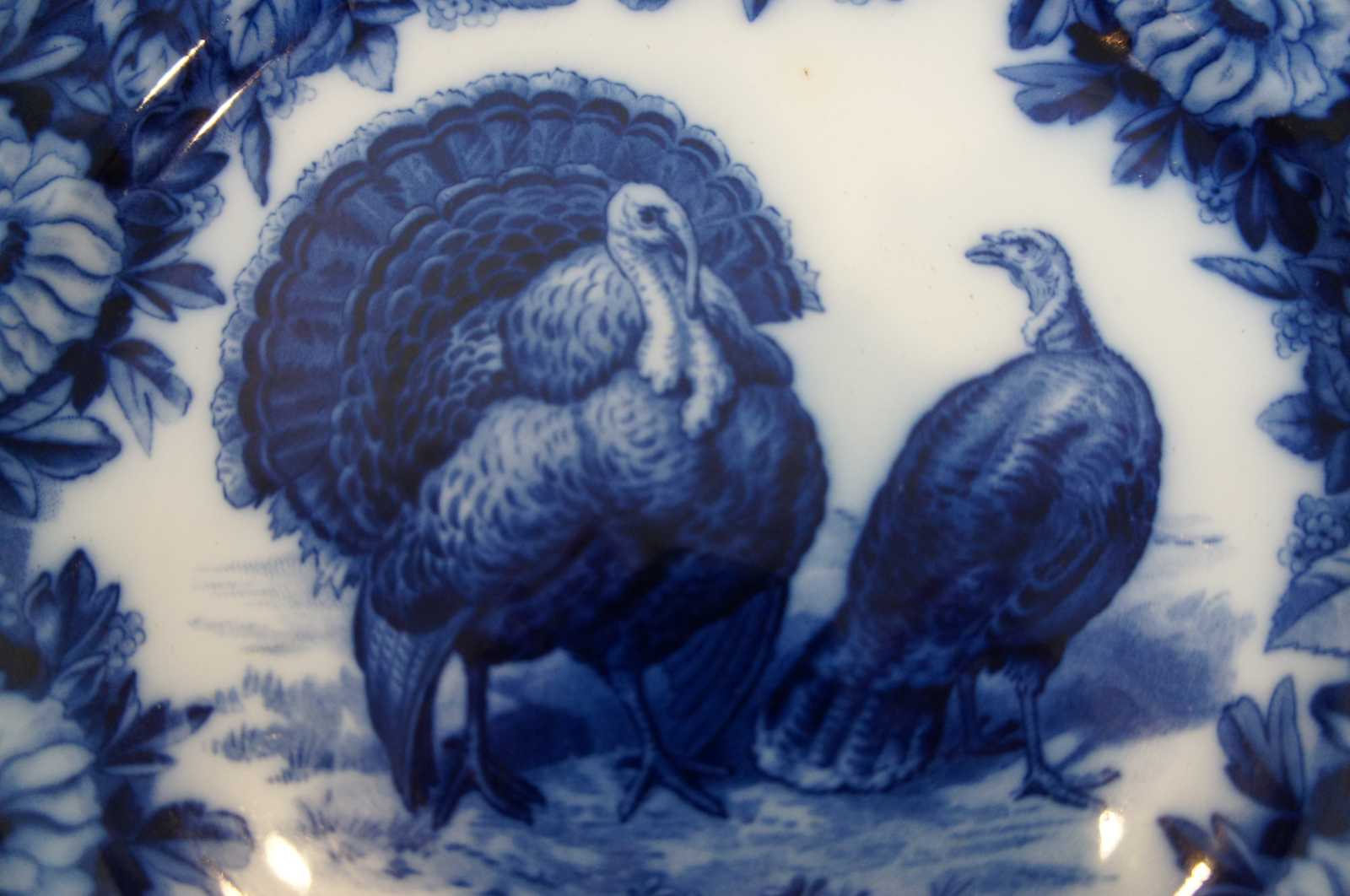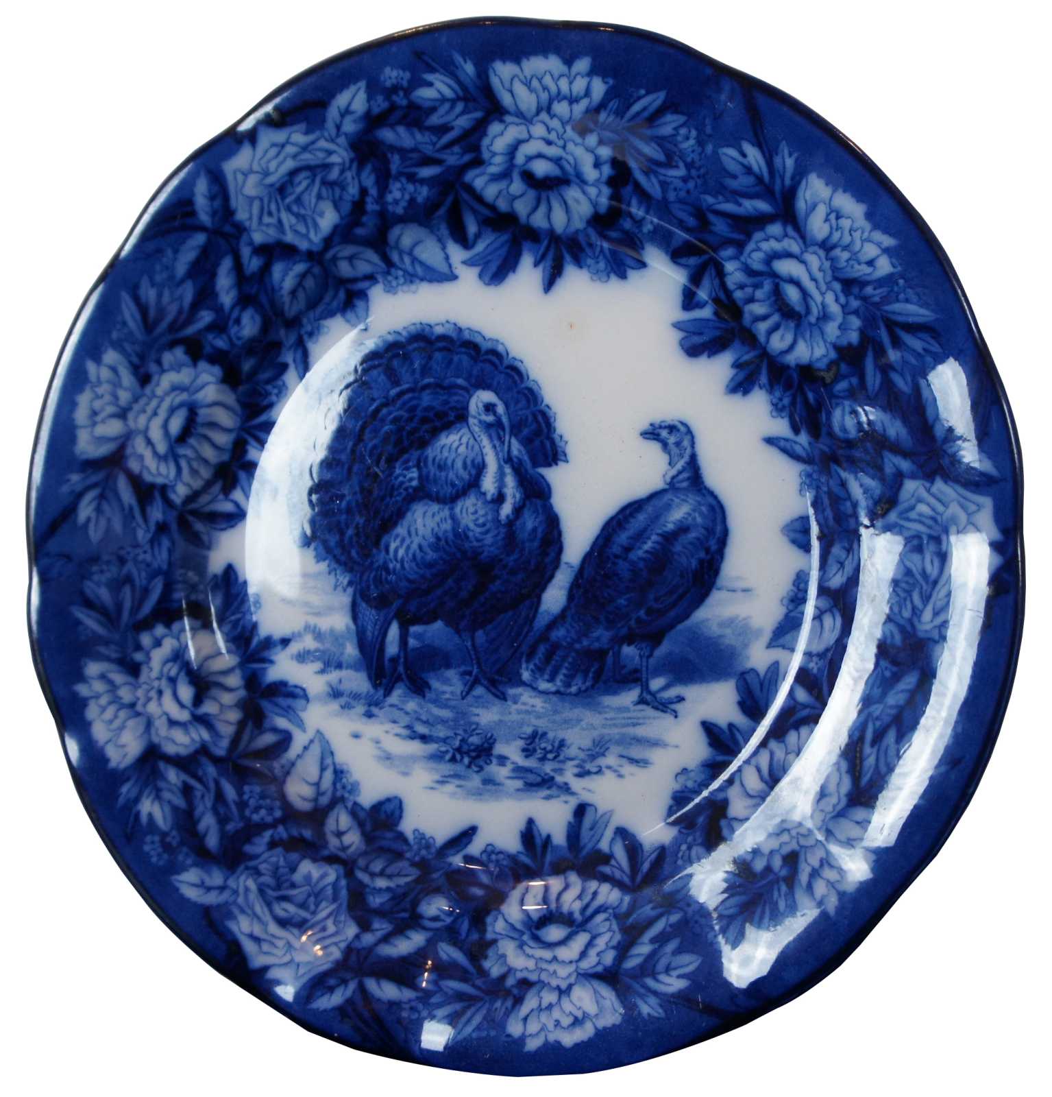 Antique Villeroy & Boch flow blue Dresden porcelain turkey plate, number V.N. 2217.